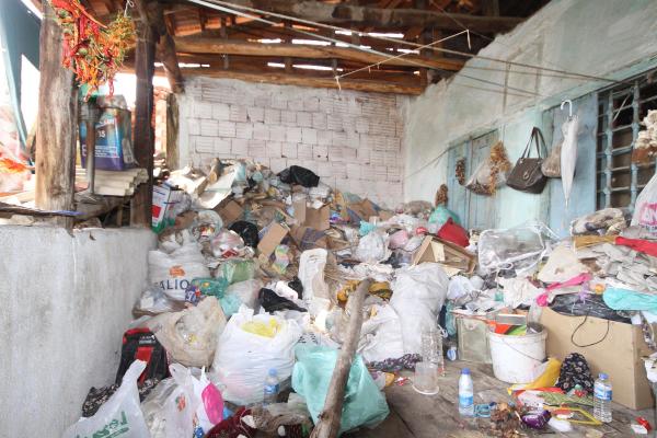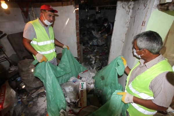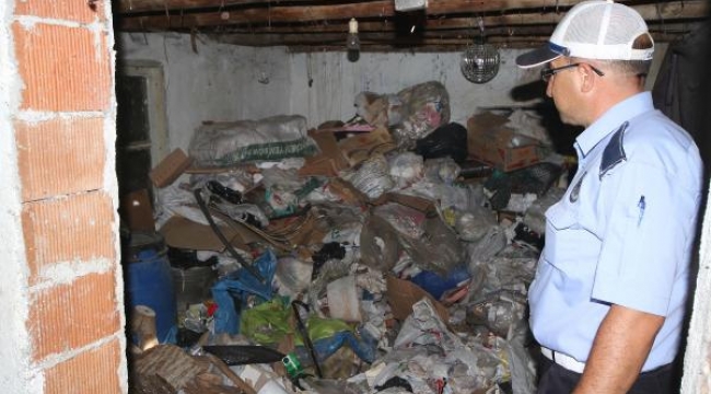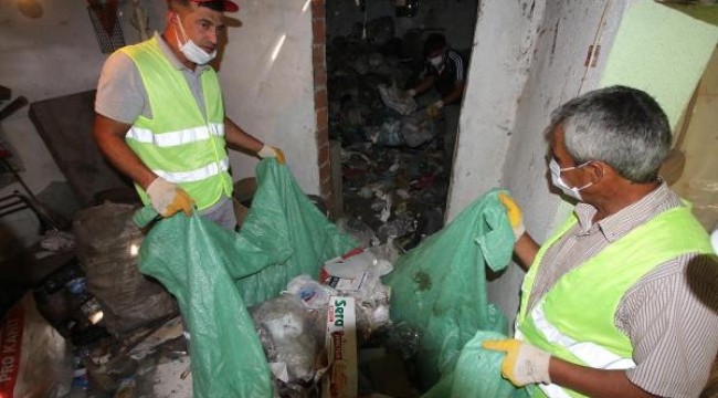 Mahalle sakinlerinin şikayeti üzerine belediye ekiplerinin kontrol ettiği bir evden 10 kamyon dolusu çöp çıktı.