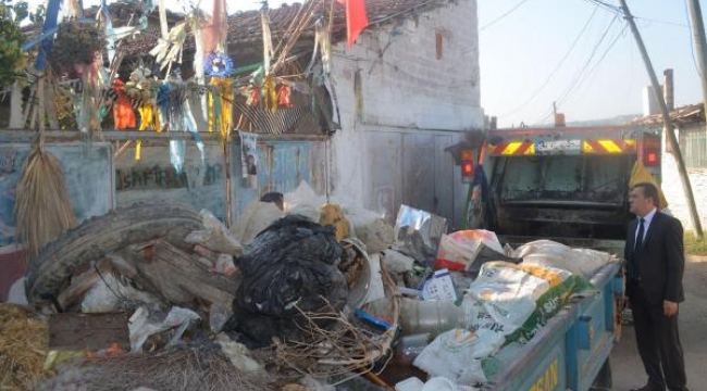 MANİSA'nın Kula İlçesi'nde mahalle sakinlerinin şikayeti üzerine belediye ekipleri bir evden 10 kamyon çöp çıkardı.