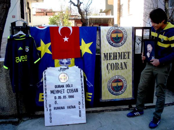Sarıgöl'deki Fenerbahçe taraftarı Mehmet Çoban, vasiyeti üzerine sevdiği takımın bayrağı ile son yolculuğuna uğurlandı. Beş yıl önce mezar taşına Fenerbahçe amblemi yaptırıp üzerine doğum tarihi ile 'Fenerbahçeli doğdu, Fenerbahçeli öldü' yazısını yazdıran Mehmet Çoban, dün (perşembe) akşam saatlerinde yaşamını yitirdi. Babasının Fenerbahçe'yi çok sevdiğini söyleyen oğlu Atacan Çoban (17), "Yıllar önce üzerinde Fenerbahçe amblemi olan mezar taşını yaptırıp ardından sarı lacivertli kefenini hazırlattı. Yeni yaptırdığı evimizin duvarına da Fenerbahçe amblemi çizdirdi, kendisi boyayacaktı. Biz onun vasiyetini yerine getirerek tabutunu Fenerbahçe bayrağıyla örttük" dedi. Merhum Mehmet Çoban, Sarıgöl Hüseyin Gümüşlü Camisi'nde kılınan cenaze namazından ardından Sarıgöl Belediyesi Kabristanlığı'nda toprağa verildi, mezarının başına da çok sevdiği Fenerbahçe bayrağı dikildi. DHA