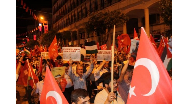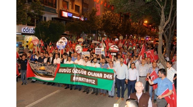 Manisa'da, Filistin için yürüyüşMANİSA'da teravih namazından çıkan vatandaşlar, ABD'nin, İsrail Büyükelçiliği'ni Tel Aviv'den Kudüs'e taşımasını ve İsrail askerlerinin Filistinlilere yönelik saldırısını protesto ederek yürüyüş yaptı.ABD'nin İsrail Büyükelçiliği'ni Tel Aviv'den Kudüs'e taşınmasının ardından yaşanan olaylarda, İsrail askerlerinin birçok Filistinliyi öldürmesi ve binlerce Filistinliyi yaralamasını protesto etmek için Manisa Sivil Dayanışma Platformu öncülüğünde Manisalılar teravih namazının ardından yürüyüş düzenlendi. Şehzadeler ilçesindeki tarihi Hatuniye Camii'nde kılınan teravi namazının ardından caminin avlusunda toplanan yaklaşık 300 kişilik grup 'Kudüs özgür olana denk ayaktayız' pankartının arkasında yürüyüş yaptı. Yürüyüşe Şehzadeler Belediye Başkanı AK Parti'li Ömer Faruk Çelik, AK Parti Şehzadeler İlçe Başkanı Ahmet Tonguç, sivil toplum örgütleri, sendika temsilcileri ve vatandaşlar katıldı. Yaklaşık 300 kişilik grup Doğu Caddesi üzerinden ellerinde 'Kudüs ümmetin kalbidir', 'Katil ABD Ortadoğu'dan defol', 'Kudüs İslam'ın namusudur' dövizleriyle birlikte tekbir sesleri eşliğinde 15 Temmuz Demokrasi Meydanı'na kadar yürüdü. Yürüyüş sırasında grup 'Kahrolsun İsrail', 'Manisa ayakta Filistin'in yanında' ve 'Filistin halkı yalnız değildir' sloganları attı. 15 Temmuz Demokrasi Meydanı'nda sonlanan yürüyüş ardından kurulan sahnede Manisa Sivil Dayanışma Platformu Dönem Sözcüsü Eğitim Bir-Sen Manisa Şube Başkanı Mesut Öner açıklama yaptı. İsrail'in Filistin'de insanlık suçu işlediğini ifade eden Şube Başkanı Öner, "Gazze'de barışçıl gösteri düzenleyen Filistinli kardeşlerimize saldırarak 60'ın üzerinde kardeşimizi katleden, 2 bin 270'in üzerinde kardeşimizi ise yaralayan katil İsrail'i şiddetle kınıyor ve lanetliyoruz. ABD ise İsrail ile birlikte işgalin tarafı olmuş ve suç işlemiştir. İsrail'in Filistin'de varlığı gayri meşrudur. Varlık sebebi işgaldir ve buna devam etmektedir. İsrail'in işgali ulusal ve uluslararası hiçbir hukukta onaylanmış değildir. Onaylanması da mümkün olamaz" dedi. İSLAM DÜNYASINI GÖREVE ÇAĞIRDIŞube Başkanı Öner konuşmasının devamında tüm İslam dünyasını İsrail'e karşı göreve davet ederek, "Biz meydanlarda sadece ABD'nin karanlık planlarına karşı direnmiyoruz. Meydanlarda aynı zamanda insanlığımızın, Müslümanlığımızın ve vicdanımızın imtihanını veriyoruz. İslam dünyası bütün Filistin topraklarına ve Filistin'in başkenti Kudüs'e sahip çıkmalı. Siyaset, ekonomik ve hukuki her türlü desteği sağlamalıdır. Müslüman ülkelerin tamamı İsrail ile siyasi, ticari, diplomatik ve ekonomik bütün ilişkilerini kesmeli, İsrail ve İsrail'in yanında duranlara da her türlü boykot ve ambargoyu uygulanmalıdır. Filistin'in müdafaası herkesin mesuliyetidir. Kudüs'ün özgürleşmesi için tüm çalışmalar başlatılmalıdır" diye konuştu. Öner'in konuşmasının ardından meydanı dolduran kalabalık Filistinliler için dua ettikten sonra dağıldı. dha