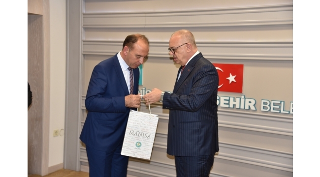 Manisa Büyükşehir Belediye Başkanı Cengiz Ergün, Turgutlu Belediye Başkanı Çetin Akın’ı ağırladı. Karşılıklı görüş alışverişinin yapıldığı ziyarette, ilçede yapılacak olan ortak çalışmalar masaya yatırıldı.Turgutlu Belediye Başkanı Çetin Akın, Manisa Büyükşehir Belediye Başkanı Cengiz Ergün’e ziyarette bulundu. Ziyarette Manisa Büyükşehir Belediyesi Genel Sekreteri Aytaç Yalçınkaya, Manisa Büyükşehir Belediye Meclisi MHP Grup Başkanvekili Mehmet Güzgülü ile Manisa Büyükşehir Belediye Meclis Üyeleri yer aldı. Karşılıklı görüş alışverişinin yapıldığı ziyarette, ilçeye yapılacak olan hizmetler masaya yatırıldı. Manisa Büyükşehir Belediye Başkanı Cengiz Ergün, yapılan ziyaretten memnuniyet duyduğunu belirtirken, konuklarına Manisa’yı temsil eden çeşitli ürünlerin yer aldığı hediyelerden takdim etti. (Bülten)