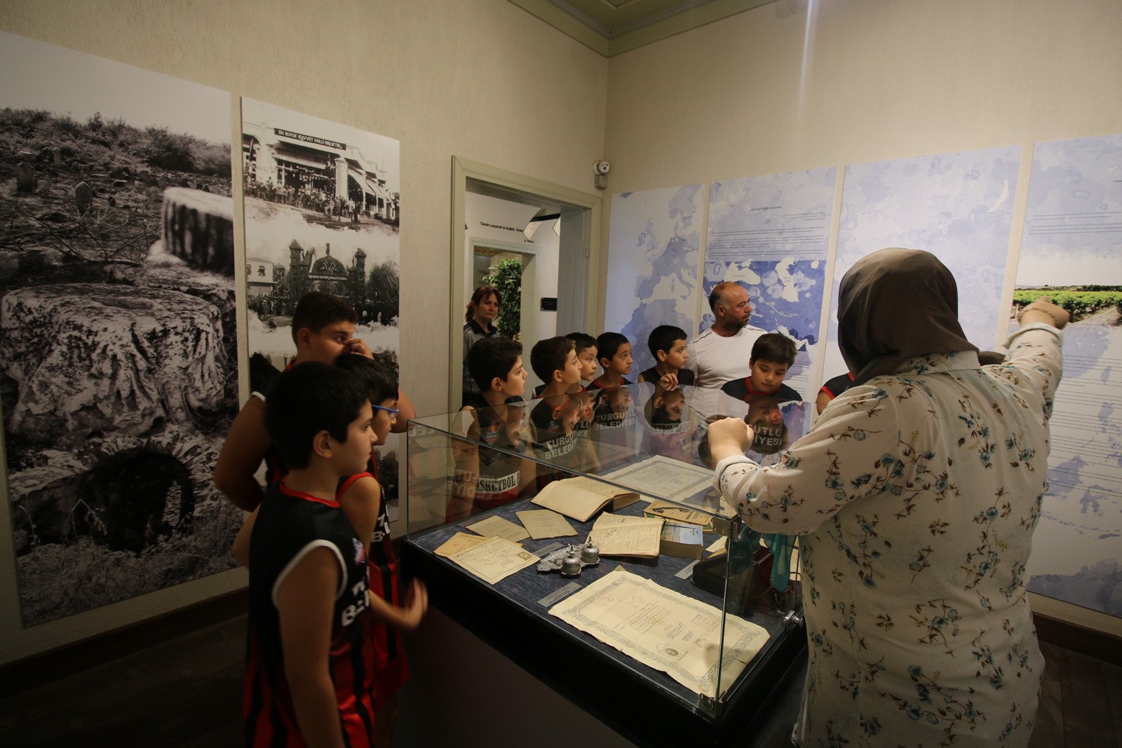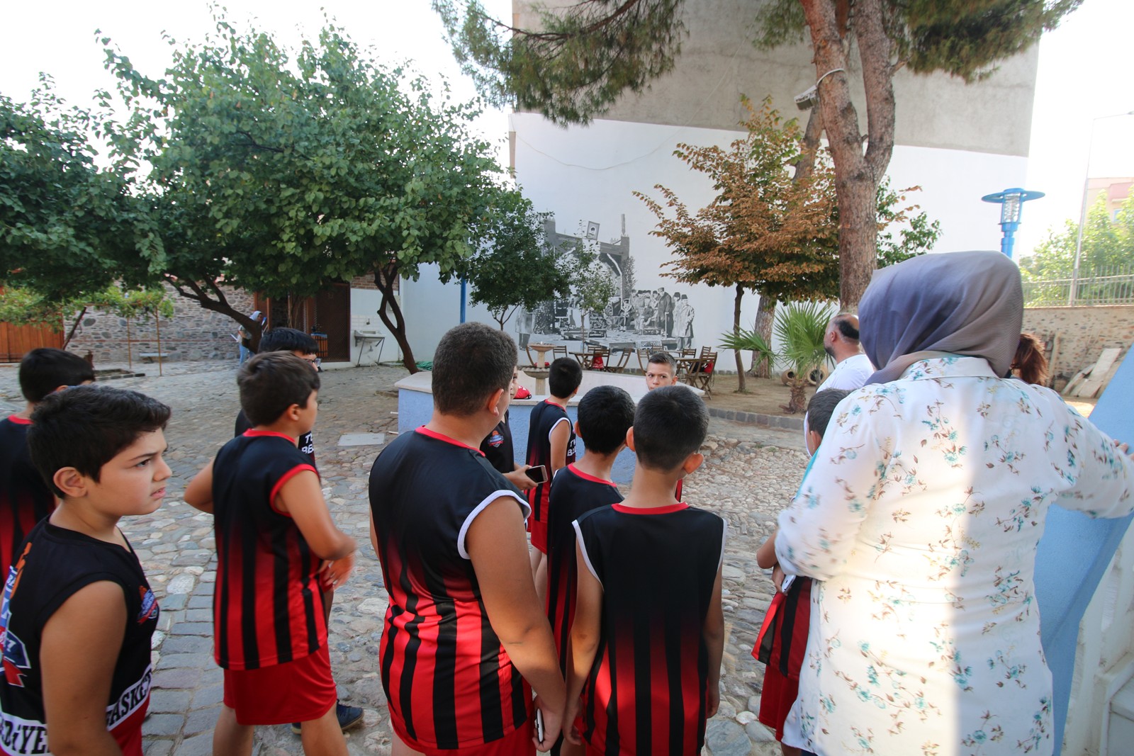 Geleceğimizin Teminatlarından Turgutlu Geçmişine Yolculuk Turgutlu Belediyesi Spor Akademisi’nin basketbolcuları, Kent Müzesi’ni ziyaret ederek Turgutlu tarihinde bir yolculuğa çıktı. Sporla kent kültürünü buluşturan ziyarette keyifli dakikalar geçiren geleceğimizin teminatı çocuklar, geçmişten geleceğe uzanan kalıcı yatırımlarından dolayı Turgutlu Belediye Başkanı Turgay Şirin’e teşekkür etti.Turgutlulu çocuk ve gençleri sporun pek çok alanında bir araya getiren Turgutlu Belediyesi, onların sosyal gelişimlerine de katkı sağlayacak çalışmalarına hız verdi. Bu kapsamda Yaz Spor Okulları kapsamında çalışmalarını sürdüren Turgutlu Basketbol Akademi kadrosu, antremanlarından sonra Kent Müzesi’nde bir araya geldi. Turgutlulu çocuklara tarih bilinci kazandıran en önemli merkezlerden olan Kent Müzesi’nde tarihi bir yolculuğa çıkan sporcular, tüm katları tek tek ziyaret edip inceleyerek sorumlulardan bilgi aldı. Adeta geçmişle geleceğin bir araya geldiği ziyarette, düşman tarafından yakılıp kül edilen Turgutlu’nun küllerinden doğuş hikayesini dinleyen ve tasvirleri inceleyen çocuklar, kendilerine bu imkanı tanıyan Turgutlu Belediye Başkanı Turgay Şirin’e teşekkür etti. Ziyaretin oldukça verimli geçtiğini ifade eden Müze Sorumlusu Mehmet Gökyayla, Tarihi Üzümcüler Konağı’nın restore edilmesinin ardından titiz bir çalışmanın yürütülerek 19 Mayıs 2017’de kapılarını ziyaretçilerine açan Kent Müzesi’nin Basketbol Akademi’nin diğer dallarında faaliyet gösteren sporcu genç ve çocukları ağırlamaya devam edeceğini belirtti.