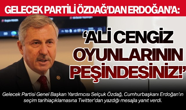 Gelecek Partili Özdağ’dan Erdoğan’a: Ne yapmak istediğinizi bilmiyor muyuz zannediyorsunuz!Gelecek Partisi Genel Başkan Yardımcısı Selçuk Özdağ, Cumhurbaşkanı Erdoğan’ın seçim tarihi açıklamasına Twitter’dan yazdığı mesajla yanıt verdi.Gelecek Partisi Sivil Toplum ve Halkla İlişkilerden Sorumlu Genel Başkan Yardımcısı Doç. Dr. Selçuk Özdağ, Cumhurbaşkanı Recep Tayyip Erdoğan’ın bir kez daha gündeme getirdiği seçim tarihine ilişkin yaptığı açıklamada, “Cumhurbaşkanı Erdoğan, bundan 40 küsür gün önce seçim için 14 Mayıs tarihini işaret etmişti. Dün tekrar bu tarihe vurgu yaparak muhalefete hodri meydan çekti. Niye? Millet ittifakı Cumhurbaşkanı adayını açıklasın diye. Sn. Erdoğan iki de bir malumu ilan
