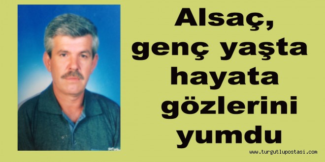 Genç yaşta hayata gözlerini yumduTURGUTLU İlçesi tornacılarından Basri Alsaç yaşamını yitirdi.Turgutlu İlçesi Küçük Sanayi Sitesi’nde tornacılık yapan 59 yaşındaki 4 çocuk babası Alsaç ,bir süre önce amansız hastalığa yakalandı. Uzun süre tedavi gören Alsaç, dün akşam rahatsızlığı artınca Turgutlu Devlet Hastanesi’ne kaldırıldı. Sabaha karşı 01.30 sıralarında genç yaşta hayata gözlerine yuman , Türk Eğitim-Sen Turgutlu Temsilcisi İsmail Alsaç’ın abisi Basri Alsaç’ın cenazesi bugün Taslı Camii’nde öğle vakti kılınacak cenaze namazı sonrası yeni kabristanlıkta sevenleri tarafından toprağa verilecek.Merhuma Allah’tan rahmet yakınlarına sabırlar dileriz.