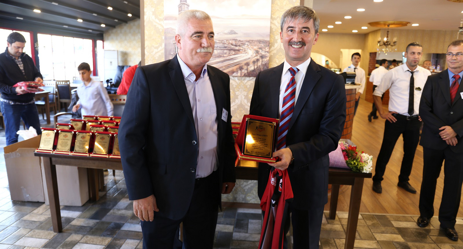 Göçmenler Sporun Efsanelerini Turgutlu'da Buluşturdu TURGUTLU Belediye Başkanı Turgay Şirin, Makedonya Göçmenleri Kültür ve Dayanışma Derneği Turgutlu Temsilciliği'nin merhum futbolcu Hüsnü Türk'ü anmak adına geçmişten günümüze Turgutlu Futbolu’na yön veren ve hizmet edenleri bir araya getirdiği organizasyona katıldı. Yemekli toplantının ardından 7 Eylül Stadyumu'na geçen konuklar, yeşil sahada maç yaparak eski günleri yad etti. Makedonya Göçmenleri Kültür ve Dayanışma Derneği Turgutlu Temsilciliği, İskenderiye Ocakbaşı'nda düzenledikleri organizasyonla geçmişten günümüze Turgutlu Futbolu’na yön veren ve hizmet edenleri bir araya getirdi. 29 Ekim Cumhuriyet Bayramı kutlamaları kapsamında efsane futbolcu Hüsnü Türk anısına gerçekleştirdikleri etkinliğe başta Turgutlu Belediye Başkanı Turgay Şirin, İlçe Milli Eğitim Müdürü Mehmet Ölmez, Amatör Spor Kulüpleri Federasyon Başkanı İsmail Aydın, geçmiş dönem Manisa Millletvekili Hasan Ören, Antrenör İsmail Özkan olmak üzere eski futbolcu ve hakemler, mahalle muhtarları ve çok sayıda davetli katıldı. Makedonya Göçmenleri Kültür ve Dayanışma Derneği Turgutlu Temsilcisi Ercan Özduman, davetlerine katılan tüm konuklarına teşekkür ederek, Turgutlu spor camiasında iz bırakanları onurlandırmak ve ilçenin değerlerine sahip çıkmak istediklerini belirterek, “Böylesi güzel bir günde sizlerle bir arada olmaktan mutluyuz. Rahmetli Hüsnü Türk gibi değerli isimlerimize, siz değerli futbol adamlarına minnet duyuyoruz. Dernek olarak organizasyonumuza destek veren Turgutlu Belediye Başkanı Sayın Turgay Şirin'e teşekkür ediyor, bu ve benzeri etkinliklerimizde bir arada olmayı diliyorum” dedi.“Futbolun Simge İsmi Türk'ü Minnetle Anıyorum” Başkan Şirin de etkinlikte yaptığı konuşmada futbol camiasında simge haline gelen, Turgutlu Belediye Zabıta Müdürlüğü göreviyle de ilçeye hizmet etmiş merhum Hüsnü Türk'ü anmalarına vesile olan Makedonya Göçmenleri Kültür ve Dayanışma Derneği Turgutlu Temsilciliğimiz’e teşekkür ederek, “Bugün aramızda çok sevgili dostlarımızı, değerli isimleri görüyorum. Renklerin önemi yok; futbol hepimiz için birer tutku. İşte bu yüzden yeşil sahalarda birlikte mücadele ettiğimiz, kimi zaman üzüldüğümüz ama bizi birbirimize bağlayan futbol aşkıyla üzüntümüzü sevince döndürmek için ter döktüğümüz yılların anıları paha biçilemez değerde. Hele ki Hüsnü Türk gibi bir değere sahip olmuş Turgutlumuz’da O’nun anılarıyla onun yeşil sahadaki inanılmaz performansıyla büyümüş bir neslimiz var. Hüsnü Türk ismiyle olduğu kadar, örnek kişiliğiyle, futbol aşkıyla, yıldız gibi parlayan azmiyle hafızalarımızda yaşıyor. Manisa Donatım, Tukaşspor, 7 Eylül İdman Yurdu gibi takımlara güç veren Merhum Hüsnü TÜRK’ü rahmetle, minnetle ve sevgiyle anıyorum. Mekanı cennet olsun, nurlar içerisinde yatsın. Bu vesileyle ebediyete intikal etmiş, geçmiş yıllarda yeşil sahalarımızda fırtınalar estiren futbolcularımızı da rahmetle anıyorum. Bu duygu ve düşüncelerimle geçmişten günümüze Turgutlu Futbolu’na yön veren ve hiizmet edenlerimizle taçlanan bu gururlu günümüzün tekrarlarını diliyorum” dedi. Konuşmaların ardından devetillere plaket takdim edildi. Ardından tüm konuklar 7 Eylül Stadyumu'na geçerek, orada da mini futbol turnuvası gerçekleştirildi.HABER MERKEZİ