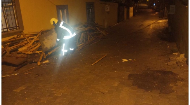 Manisa’nın Gölmarmara ilçesinde aşırı rüzgar nedeniyle bir evin çatısı sokağa uçtu.
