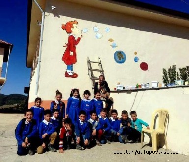 MANİSA'nın Sarıgöl İlçesi'ndeki Dindarlı Ahmet Yoldaş İlkokulu'na gelen 29 yaşındaki ressam Fatih Küçük, okulun duvarlarını masal kahramanlarının figürleriyle süsledi.