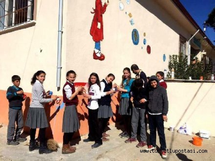 Gönüllü ressam okul duvarlarına hayat verdi