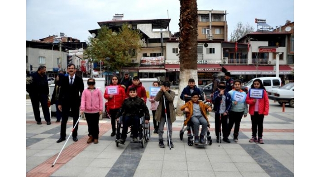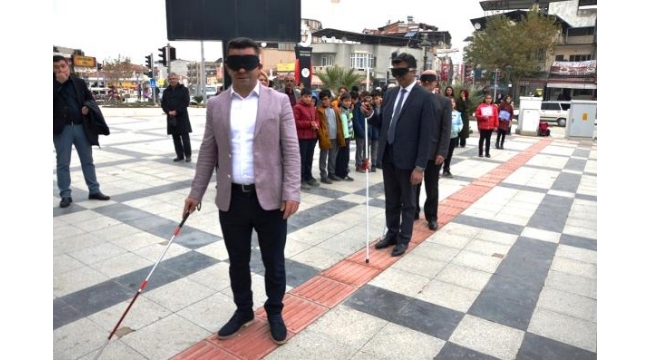 MANİSA'nın Sarıgöl İlçesi'ndeki Sarıgöl Mimar Sinan İlkokulu'nda görevli görme engelli öğretmen Süleyman Boztepe, engelliler günü için Kent Meydanı'nda etkinlik düzenledi. Etkinliğe katılanlar, gözleri bağlı bir şekilde beyaz bastonla engelliler için ayrılan yolda yürüyüş yaptı.Sarıgöl Mimar Sinan İlkokulunda rehberlik öğretmeni olarak görev yapan Süleyman Boztepe, engelliler gününde farkındalık yaratmak için Kent Meydanı'nda öğrencilerle birlikte farkındalık etkinliği yaptı. Süleyman Boztepe'nin düzenlediği farkındalık etkinliğine, Manisa Büyükşehir Belediyesi Çocuk Kültür ve Sanat Merkezi Sorumlusu Nazmiye Pars destek verdi. Sarıgöl Kent Meydanı'nda etkinlik kapsamında, öğrencilerle birlikte beyaz bastonun kullanımı uygulamalı olarak yapıldı. Sarıgöl Kaymakamı Çetin Kılınç ve Sarıgöl Belediye Başkanı Necati Selçuk etkinliğe katılarak, gözleri bağlı bir şekilde beyaz bastonla engelliler için ayrılan yolda yürüyüş yaptı.Vatandaşların da ilgiyle izlediği etkinlik sonunda Sarıgöl Kaymakamı Çetin Kılınç ve Sarıgöl Belediye Başkanı Necati Selçuk, etkinliği düzenleyen görme engelli Rehberlik öğretmeni Süleyman Boztepe'ye teşekkür etti. Düzenlediği etkinlik hakkında konuşan Süleyman Boztepe, "Engelliler günü nedeniyle farkındalık yaptık. Amacımız biz görme engellilerin zorluklarını gören gözlere de yansıtmaktı. Etkinliğimize katılanlara teşekkür ederim." dedi.DHA