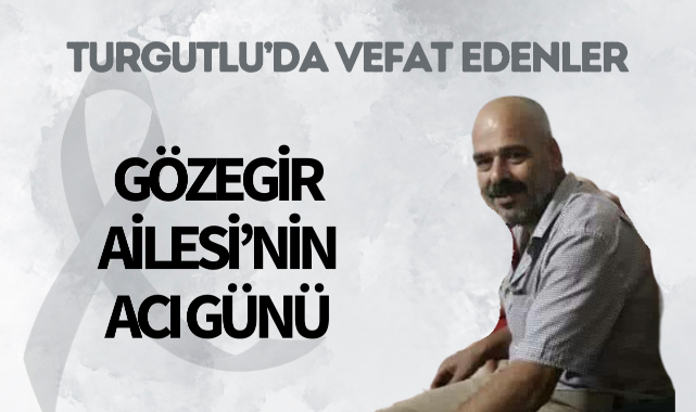 Gözegir Ailesi’nin Acı GünüTURGUTLU İlçesi sakinlerinden (Serçe) İsmail Gözegir 52 yaşında hakkın rahmetine kavuştu. Cenazesi bugün ikindi namazına müteakip Hallaçoğlu Camii’nde kılınacak cenaze namazının ardından yeni kabristanda toprağa verilecek.Yakınları: babası merhum Ali Yaşar Gözegir, kardeşleri İbrahim Gözegir, Zülfikar Gözegir, Kader AkkınMerhuma Allah'tan rahmet, yakınlarına başsağlığı dileriz.
