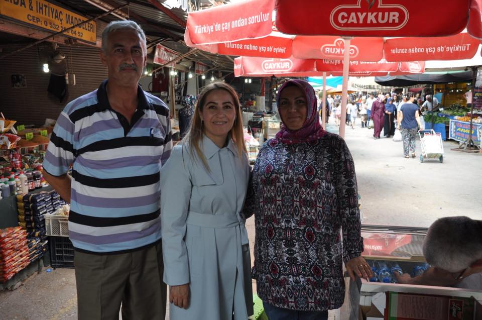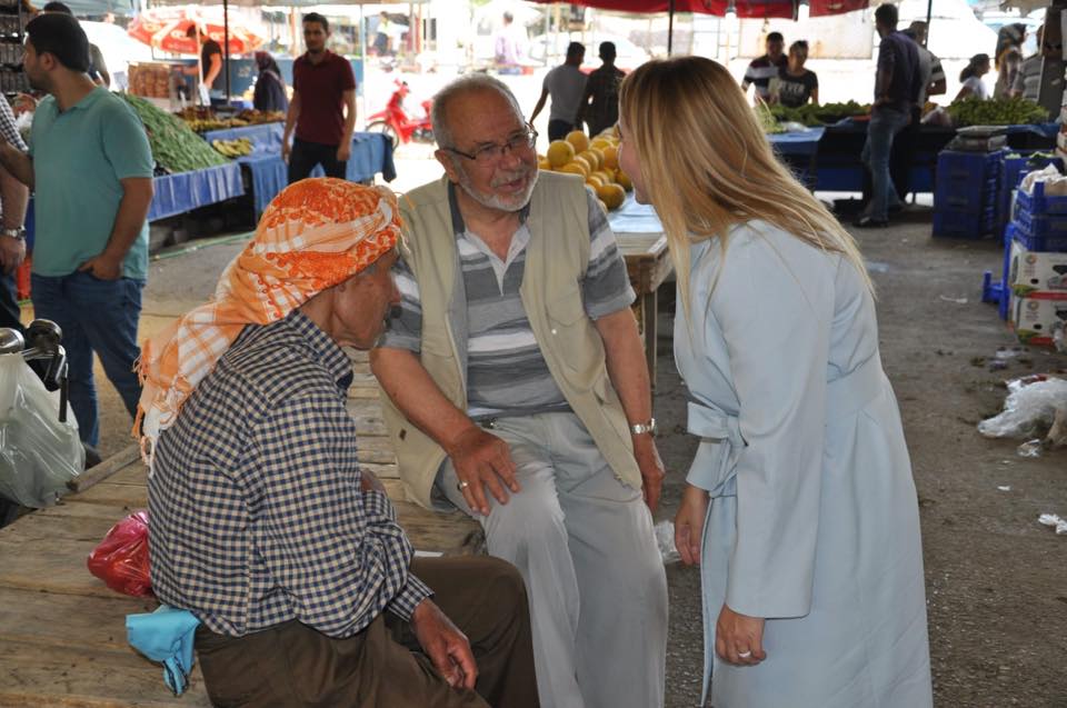 Ak Parti’li Güzide İçen pazarda vatandaşlarla buluştuAK Parti Manisa Milletvekili adayı Yüksek Mimar Güzide İçen Kasap, Pazartesi Pazarında bir araya geldiği Turgutlulu vatandaşların yoğun ilgisiyle karşılandı.24 Haziran seçimlerinde sayılı günler kala aktif bir şekilde çalışan Ak Parti Manisa Milletvekili 6.sıra adayı Güzide İçen Kasap, durmaksızın devam ettiği programında gündüz saatlerinde Pazartesi Pazarını ziyaret ederek esnaflarla ve vatandaşlarla buluştu. Ak Parti İlçe Başkanı Kazım Dilek, Ak Parti Eski Genel Başkan Yardımcısı ve eski milletvekili Hüseyin Tanrıverdi, Ak Partili eski Turgutlu Belediye Başkanı Mustafa Serhat Orhan ve Kadın Kolları Başkanı Sibel Nevin Baş’ın da eşlik ettiği ziyarette pazarcı esnafının ve vatandaşların hal hatrını soran Güzide İçen Kasap, pazarda yoğun ilgiyle karşılaştı. Özellikle üzüm tezgahı bulunan esnaflara da giden Güzide İÇen Kasap, üzüme bu sene de desteğini verileceğini belirtirken, üzüm işletmesi sahibi eski belediye başkanı Serhat Orhan, bu sene üzümün fiyatını 7 TL’ye çıkacağını ifade etti. Pazarı bir boydan bir boya dolaşan ve tezgahları tek tek ziyaret eden milletvekili adayı Güzide İçen Kasap, pazarcı esnafına hayırlı işler dileyerek beraberindekilerle pazardan ayrıldı. Nurullah ÇANKAYA