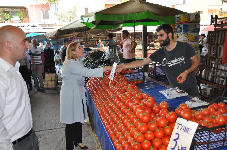 Güzide İçen pazarda vatandaşların yoğun ilgisiyle karşılandı