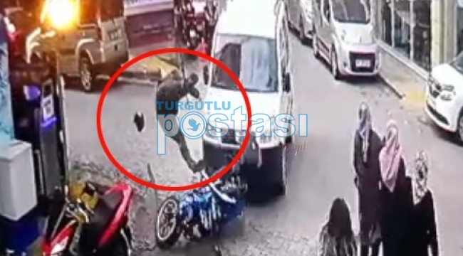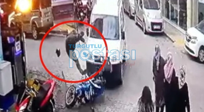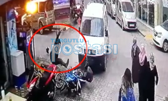 MANİSA’nın Turgutlu İlçesinde hafif ticari araç ile motosikletin çarpıştığı kazada motosiklet sürücüsü E. D. yaralandı. Kaza, bir iş yerinin güvenlik kamerasına yansıdı. Kaza, Salı günü saat 14.30 sıralarında Turan Mahallesi Akçakmak Yolu üzerinde meydana geldi. Akçakmak Yolu’nda ilerleyen E. D. (28) yönetimindeki 45 AG* *** plakalı motosiklet, Okçular Sokak’tan çıkış yapan İ. S.’in (50) kullandığı 45 R* **** plakalı hafif ticari araç ile çarpıştı. Çarpışmanın etkisiyle savrulan motosikletten düşen sürücü yaralandı. Çevredekilerin ihbarı üzerine kaza yerine sağlık ve polis ekipleri yönlendirildi. Sağlık ekiplerince Turgutlu Devlet Hastanesine kaldırılan motosikletlinin sağlık durumunun iyi olduğu öğrenildi. Polis, kazayla ilgili başlattığı soruşturmayı sürdürüyor. MOTOSİKLET SÜRÜCÜSÜ HAVAYA UÇMUŞ!Motosiklet sürücüsünün yaralandığı kaza, bir iş yerinin güvenlik kamerası tarafından saniye saniye görüntülendi. Güvenlik kamerasına yansıyan görüntülerde, hafif ticari araç ile çarpışan motosiklet sürücüsünün havaya uçtuktan sonra bir iş yerinin duvarına çarparak yaralandığı görülüyor.