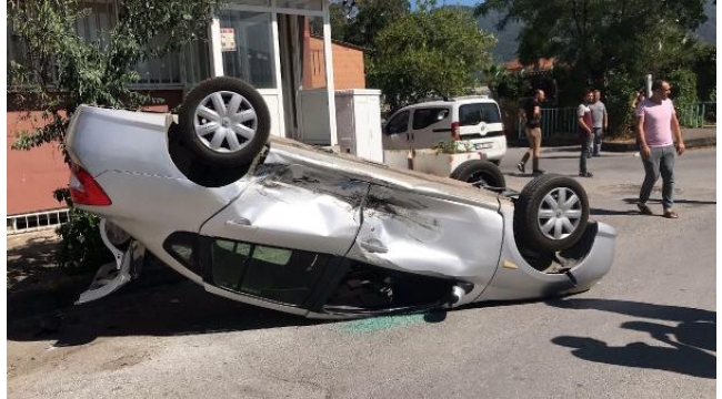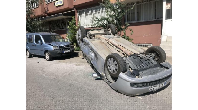 Hafif ticari aracın çarptığı otomobil takla attı: 1 yaralı