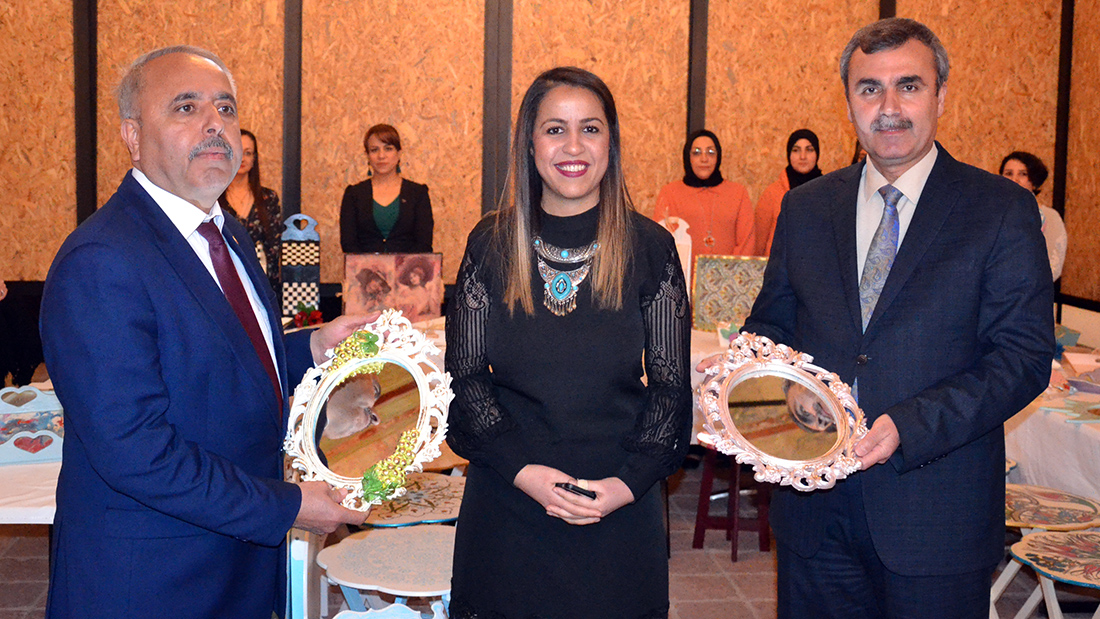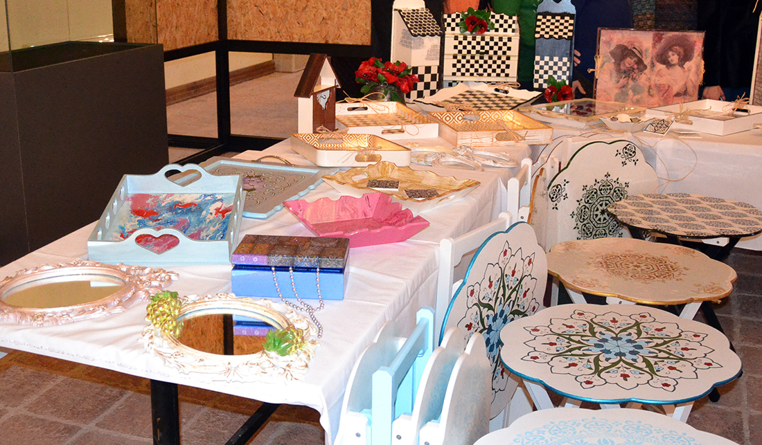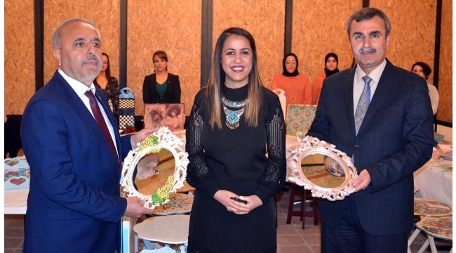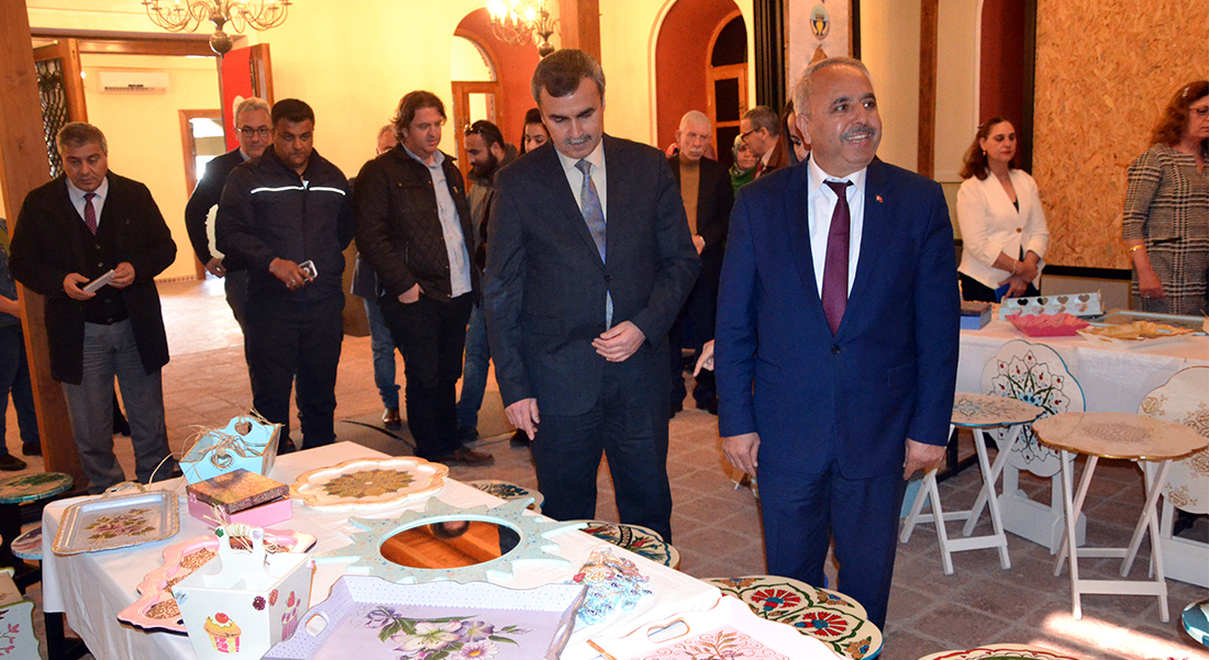 TURGUTLU Belediyesi ile Turgutlu Halk Eğitim Merkezi işbirliğiyle dekoratif ahşap sistemi el sanatları kursu 6 Kasım 2018 tarihinde kurs öğretmeni Sevinç Sudak Zorlubaş yönetiminde 17 kadın kursiyerin katılımıyla açıldı.Kursiyerlerin el emekleri ile hazırlamış oldukları karma el sanatlarının sergilendiği ‘Hanımeli Dokunuşları’ adlı sergi salı günü saat 14.00’te Turgutlu Belediyesi Etkinlik Merkezinde törenle beğeniye sunuldu. Açılışa İlçe Milli Eğitim Müdürü Mehmet Ölmez, Halk Eğitim Merkezi Müdürü Hayrettin Uslu ve yardımcısı Yaşar Kocatürk, kursiyerler ve vatandaşlar katıldı.El emeği ve göz nuru harcanarak yapılan el sanatları sergisinin kurdelesini Ölmez ve kurs öğretmeni Zorlubaş birlikte kestiler.Sergiyi gezen protokol üyeleri kursiyerlerin yaptıkları eserlere tam not verdi. Sergi 5-9 Mart tarihleri arasında açık kalacak.Tuncel YILMAZ