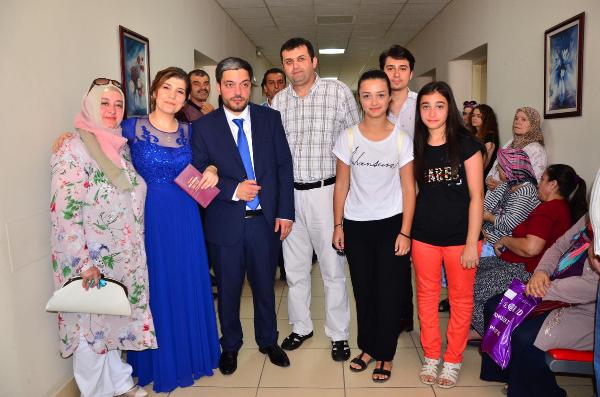 Hastane odasında nikah kıydılarMANİSA'da 29 yaşındaki Serkan Zeyrek, annesinin yaklaşık bir aydır tedavi gördüğü hastane odasında, nişanlısı, 26 yaşındaki Tuba Adıgüzel ile nikah kıydırdı.Manisa'nın Şehzadeler İlçesi'nde özel bir lisede görevli öğretmen Serkan Zeyrek, yaklaşık 1 aydan bu yana Manisa Devlet Hastanesi'nde şeker hastalığından dolayı tedavi gören annesi 64 yaşındaki Şükran Zeyrek'i sevindirdi. Nişanlısı Tuba Adıgüzel ile birlikte 17 Temmuz tarihine Manisa'daki Bedesten Salonu için nikah günü alan Serkan Zeyrek, annesinin tedavisi tamamlanmayınca yer değişikliği yapıp, nikah için Manisa Devlet Hastanesi Dahiliye Bölümü'ndeki 116 numaralı odaya geldi. Hasta yatağında oğlunun nikahını görebilen anne Şükran Zeyrek, zaman zaman gözyaşlarını tutamadı. Hastane odasına çağrılan nikah memuru Nurettin Başkurt da, çiftin nikahını kıydı. Nikaha katılanlara şeker ikram edildi, geline takılar takıldı.Yakınları ile birlikte hastane koridorunda hatıra fotoğrafları çektiren çift, çok mutlu olduklarını söyledi. Damat Serkan Zeyrek, 17 Temmuz tarihine nikah günü aldıklarını ancak, annesinin hastanedeki tedavisinin sona ermemesi üzerine nikah yerini değiştirmeye karar verdiklerini belirterek, "Nikah günümüzü almıştık. Ama annem rahatsız diye yapamadık. Annemin de görmesini istiyorduk. Yetkililer de izin verdi. Çok teşekkür ediyorum" diye konuştu. DHA