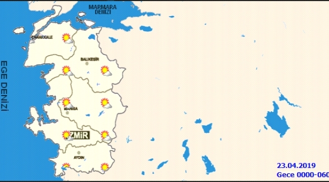 | Bölge geneli az bulutlu geçecek. HAVA SICAKLIĞI: 2 ila 4 derece artacak. RÜZGAR: Kuzeyli yönlerden orta kuvvette esecek. |