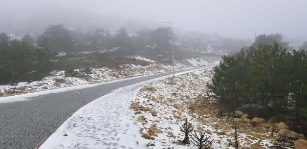 MANİSA'daki 1517 metre yüksekliğindeki Spil Dağı'na hava sıcaklıklarının düşmesiyle birlikte kar yağdı. Dün gece saatlerinde başlayan yağışın ardından, sabah saatlerinde Spil'e gidenlerler sis ve karla karşılaştı.