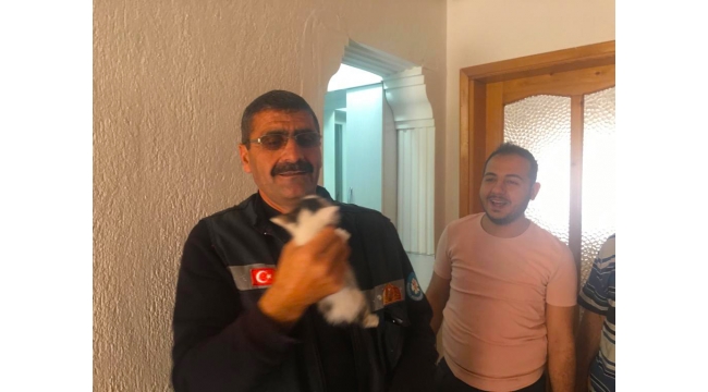 HAVALANDIRMA DELİĞİNE DÜŞEN YAVRU KEDİYİ İTFAİYE KURTARDI
