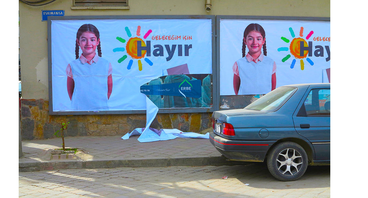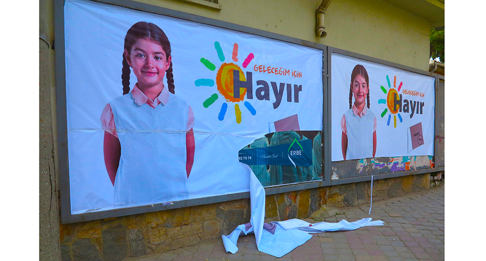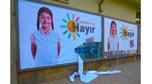 Turgutlu İlçesi’nde ‘hayır’ afişi kimliği belirsiz kişi ya da kişilerce yırtıldı.