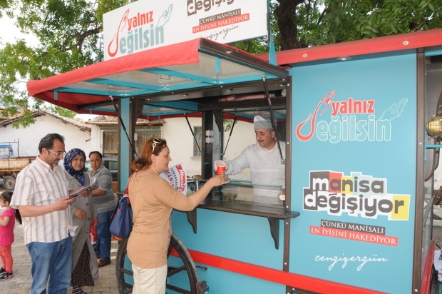 Hayır yemeklerine büyükşehir desteği MANİSA Büyükşehir Belediyesi, Şehzadeler İlçesine bağlı Çaltepe ve Tepecik mahallelerinde her yıl geleneksel olarak düzenlenen hayır yemeklerine destek verdi. Hayır yemeklerinde vatandaşlara çorba ikramında bulunulurken, yemeğe katılan vatandaşlar uygulamadan duydukları memnuniyeti ifade etti. Her yıl Çaltepe ve Tepecik Mahallelerine geleneksel olarak düzenlenen hayır yemeğine bu yıl Manisa Büyükşehir Belediyesi’de destek verdi. Manisa Büyükşehir Belediyesi’ne ait çorba araçları, köylere giderek hayır yemeğine katılan vatandaşlara çorba ikramında bulundu. Gencinden yaşlısına birçok vatandaş, ikram edilen çorbalardan alırken, uygulama nedeniyle Manisa Büyükşehir Belediyesi’ne teşekkür etti. Şehzadeler İlçesine bağlı Çaltepe ve Tepecik Mahallelerinde düzenlenen hayır yemeklerinde, Soma’da hayatını kaybeden maden işçileri de unutulmadı. Hayatını kaybeden maden şehitleri için dualar okunurken, geride kalanlara sabır temennilerinde bulunuldu. Uygulamanın bundan sonraki süreçlerde de devam edeceğini ifade eden Manisa Büyükşehir Belediyesi Kültür ve Sosyal İşler Daire Başkanı Nursel Ustamehmetoğlu, “Bilindiği üzere bu uygulamamız kentimizin değişik noktalarında sürekli devam ediyor. Büyükşehir kapsamında köyden mahalleye dönüşen Çaltepe ve Tepecik Mahallelerinde düzenlenen hayır yemeklerinde de vatandaşlarımıza çorba ikramında bulunduk. Talep gelmesi halinde il genelinde de bu uygulamayı sürekli hale getirmek istiyoruz” dedi. HABER MERKEZİ