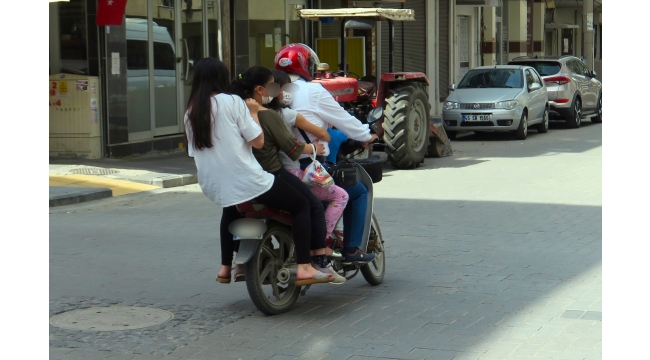MANİSA'nın Turgutlu ilçesinde pandemi yasaklarına rağmen 5 kişi ile binilen motosiklet görenleri hayretlere düşürdü.