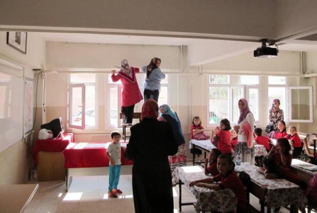 HİZMETLİ OLMAYINCA PERDELERİ VELİLER TAKTI
