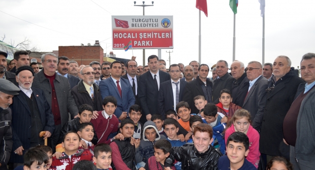 Hocalı katliamının acısını paylaştılarMANİSA'nın Turgutlu İlçesi'nde, 'Hocalı Katliamı'nın 23'üncü yıldönümünde, 'Hocalı Şehitleri' ismi verilen park törenle açıldı.Açılışı yapılan parkın bulunduğu Turgutlar Mahallesi'ndeki törene; MHP Iğdır milletvekili Sinan Oğan, Belediye Başkan Yardımcısı Hakan Sezer, Turgutlu Belediye Belediyesi eski Başkanı Yunus Erkan, MHP Manisa Milletvekili aday adayı Ahmet Orhan, Azerbaycan Derneği Genel Başkanı Enver Türkoğlu, Azerbaycan Diaspora Bakanlığı görevlisi Kerem Memmedov, Azerbaycan Derneği Manisa İl Başkanı ve şehir meclisi üyesi Ender Solhan, ADD Turgutlu Şube Başkanı Ali Tezcan, daire amirleri ile çok sayıda vatandaş katıldı. Türk ve Azeri milli marşlarının okunmasının ardından açılış konuşmasını yapan Azerbaycan Derneği Manisa İl Başkanı Ender Solhan, "Bu zulüm acı ve korkunçtur. Bizler burada şehitlerimize şükranlarımızı sunmak için bu parkın açılışını gerçekleştiriyoruz. Burada emeği geçen herkese çok teşekkür ediyorum" dedi.