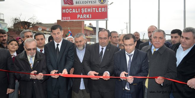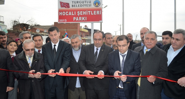 Ardından açılış kurdelesini kesmek için kürsüye çıkan MHP Iğdır Milletvekili Sinan Oğan şunları söyledi: "Belediyecilik sadece yol, kanalizasyon yapmak değildir. Böyle manevi duygulara da tercüman olmak demektir. Bu parkın açılmasında emeği olan Belediye Başkanımız Turgay Şirin'e ayrıca teşekkür ediyorum. Atatürk Azerbaycan'ın kederi kederimiz, sevinci sevincimiz demişti. Bu aynı zamanda Mustafa Kemal Atatürk'ün de bu önemli mirasına sahip çıkmaktır. Sadece Azerbaycan'ın sevincini değil bugün burada olduğu gibi kederini de paylaşarak Atatürk'ün mirasına da sahip çıkmıştır. Atatürk'ün öğüt ve nasihatini aynı zamanda Turgutlu Belediyesi bu parkı açmakla yerine getirmiştir. Hocalı sözün bittiği yerdir. Bizler ağlarken bile içimizden ağladık. Sevinçlerimizi yüksek sesle, acılarımızı içimizden ağlayarak gerçekleştirdik. Bu ise bize şunu getirmiş oldu. Beş milyon Türk'ü Balkanlar'da Kafkaslar'da Anadolu'da katledenler bugün Türkiye'yi katliamcı olarak ifade etmeye başladılar. Bunun bir tek sebebi var. Bugün burada yaptığımız gibi acılarımızı sembolleştirmemek, acılarımızı bir daha yaşanmasın diye bu şekilde acılarımız yaşatacak parklar, hatıra ormanları yapmadığımızdandır. Bugün Avrupa bizi soykırımcı olarak itham etmek istiyor. Ama 23 sene önce gerçekten yaşanan bir soykırıma gözlerini kapatarak görmezden gelmeye çalışıyorlar. Bizim bu tür anıtlarımız, parklarımızı bu sebepten dolayı çok önemlidir. Bunlar belediyesi asli görevi değil milli bir görevidir. Meclis'te Hocalı'yı meclis olarak andık ve bu vahşeti kınadık. Meclisinde 26 Şubat'ı 'Hocalı Soykırımı' anma günü olarak kabul etmesi için çağrıda bulunduk." Ardından dualar eşliğinde parkın kurdelesi protokol üyelerince kesildi. 1.5 dönüm arazi üzerine kurulu Hocalı Şehitleri Parkı'nda mini futbol sahası ile oturma alanları bulunuyor.HABER MERKEZİ