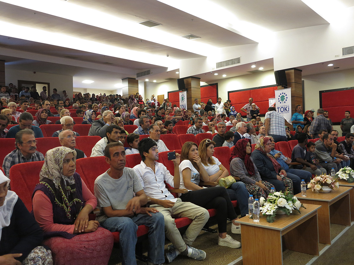 İhtiyaç sahibi 280 vatandaş evlerine kavuştuAile Sosyal Politikalar Bakanlığı ile Başbakanlık Tolu Konut İdaresi Başkanlığı (TOKİ) tarafından Manisa’nın Turgutlu İlçesi’nde yaptırılan sosyal konutlar sahiplerini buldu. 49 metrekare olarak yapılan 2+1, 280 daire ihtiyaç sahibi vatandaşlara kura çekimi sonrası teslim edildi 2013 yılında dönemin eski belediye başkanı Serhat Orhan’ın girişimleri ile Turgutlu Belediyesi tarafından satın alınan eski Evin Konserve’ nin bulunduğu alan TOKİ tarafından 9 bloktan oluşan 282 adet sosyal konut yapıldı.49 metrekare olarak yapılan 2+1, 280 daire ihtiyaç sahibi vatandaşlara kura çekimi sonrası teslim edildi. Turgutlu Ticaret ve Sanayi Odası Konferans Salonu’ da bugün saat 14.00 de gerçekleşen kura çekimine Turgutlu Kaymakamı Uğur Turan, Aile ve Sosyal Politikalar Bakanlığı Sosyal Yardımlar Genel Müdürlüğü’nde Barınma Yardımları Daire Başkanı Huriye Seven, Manisa Aile ve Sosyal Politikalar İl Müdürü Murat Konan, Turgutlu Belediye Başkan Yardımcısı Çetin Akın, Jandarma Komutan Vekili Üsteğmen Zafer Özkara, Turgutlu MYO Müdürü Kenan Yalınız, AK Parti Turgutlu İlçe Başkanı Mürşit Gedizli, daire müdürleri, muhtarlar ve ev sahibi olmaya hak kazanan vatandaşlar ile aileleri katıldı.704 başvurudan 280’inin başvuruları kabul edildi ve ev sahibi olmanın mutluluğunu yaşadılar. 35 bin 100 TL bedel biçilen daireleri satın almaya hak kazanan isimler 270 ay vade ile ev sahibi olduklarından dolayı mutlu olduklarını dile getirdiler. Ev sahibi olan ihtiyaç sahibi isimler projede emeği geçen herkese teşekkür ederken ayda 400 TL kira ödeyen Nurullah Çan;” Allah devletimizden razı olsun, 400 TL kira ödüyordum şimdi aylık 130 TL ödeyerek ev sahibi oldum” dedi.Kura çekiminde ev sahibi olmaya hak kazanan ve kurada hangi daireye yerleşeceği belli olan isimler mutluluktan gözyaşı döktü. Aile ve Sosyal Politikalar Bakanlığı Sosyal Yardımlar Genel Müdürlüğü’nde Barınma Yardımları Daire Başkanı Huriye Seven;” Devlet olarak her zaman ihtiyaç sahibi vatandaşımızın yanında olduk ve olmaya devam edeceğiz. Sosyal devlet olmak halkına sahip çıkmaktır” dedi. Turgutlu Kaymakamı Uğur Turan ise;” Bu projede yer alan tüm paydaşlara teşekkür ederim. Halkımızın uygun koşullarda ev sahibi olması bizleri çok mutlu etti. Allah bu devlete ivme kazandıran tüm isimlerden razı olsun” ifadelerini kullandı. Doğan ÇİZMECİ/TURGUTLU