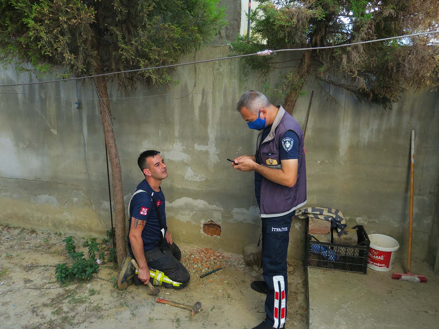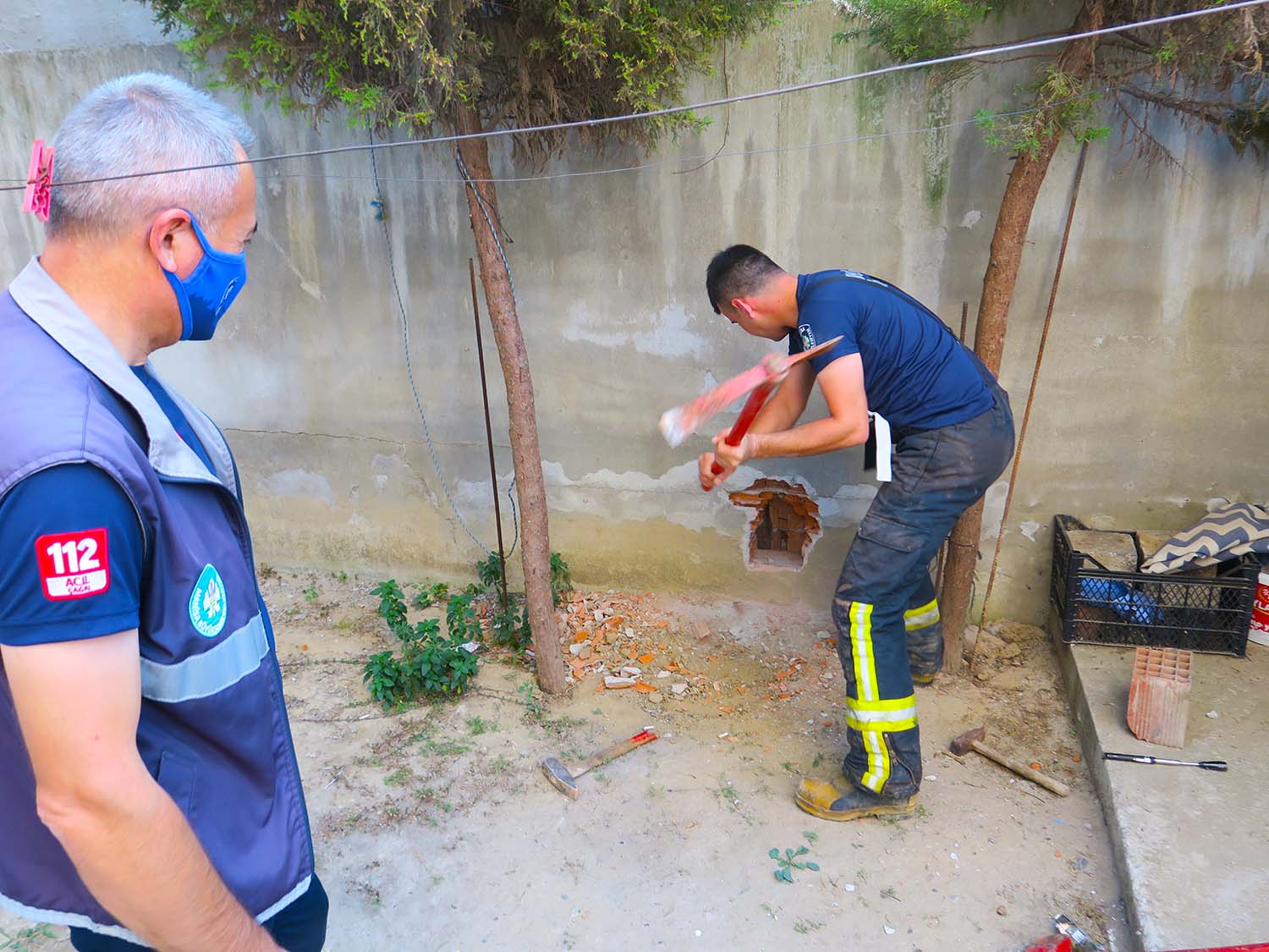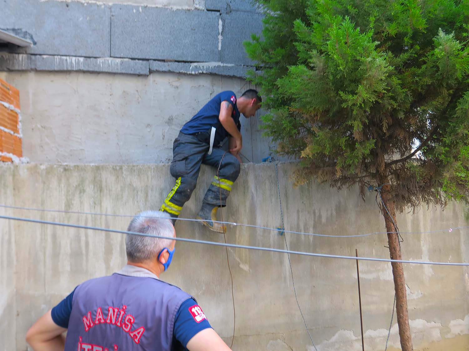 Manisa’nın Turgutlu ilçesinde iki duvar arasında 24 saat mahsur kalan yavru kedi ,duvar delinerek itfaiye tarafından kurtarıldı.Olay bugün saat 19.00 ‘da İstiklal Mahallesi Cumhuriyet Caddesi No 16’daki 4 katlı binan zemin katındaki bahçeli evde meydana geldi.Ev sahibi Kenan Özdemir (30) dün akşam bahçede kedi miyavlaması sesini duydu. Ertesi gün akşam üstüne doğru anne kedinin duvarın üzerine çıkması üzerine yavru kedinin 3 metre yüksekliğindeki yan bina ile kendi evin bahçe duvarı arasında kaldığını fark etti.Olayın bildirilmesi üzerine olay yerine gelen itfaiye görevlileri duvarı delerek yavru kediyi kurtarmaya çalıştı. Duvarın üzerine çıkan diğer itfaiye görevlisi özel bir aparatla yavru kediği sıkıştığın yerden kurtardı. Serbest bırakılan yavru kedi bahçedeki yuvağa doğru kaçtı. Anne kedi ise yavrusunun sesini duyması üzerine meydana çıktı.Ev sahibi Özdemir : “ Dün akşamdan beri, kedi miyavlaması geliyordu. Bugün akşamüstü anne kedinin duvara çıkması üzerine biz olayı fark ettik. Allah razı olsun itfaiye erlerine. Bir canı kurtardı. Sağ olsunlar “diye konuştu. Doğan ÇİZMECİ