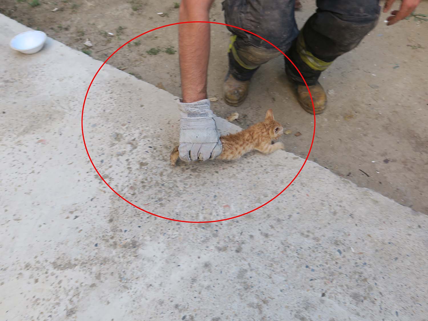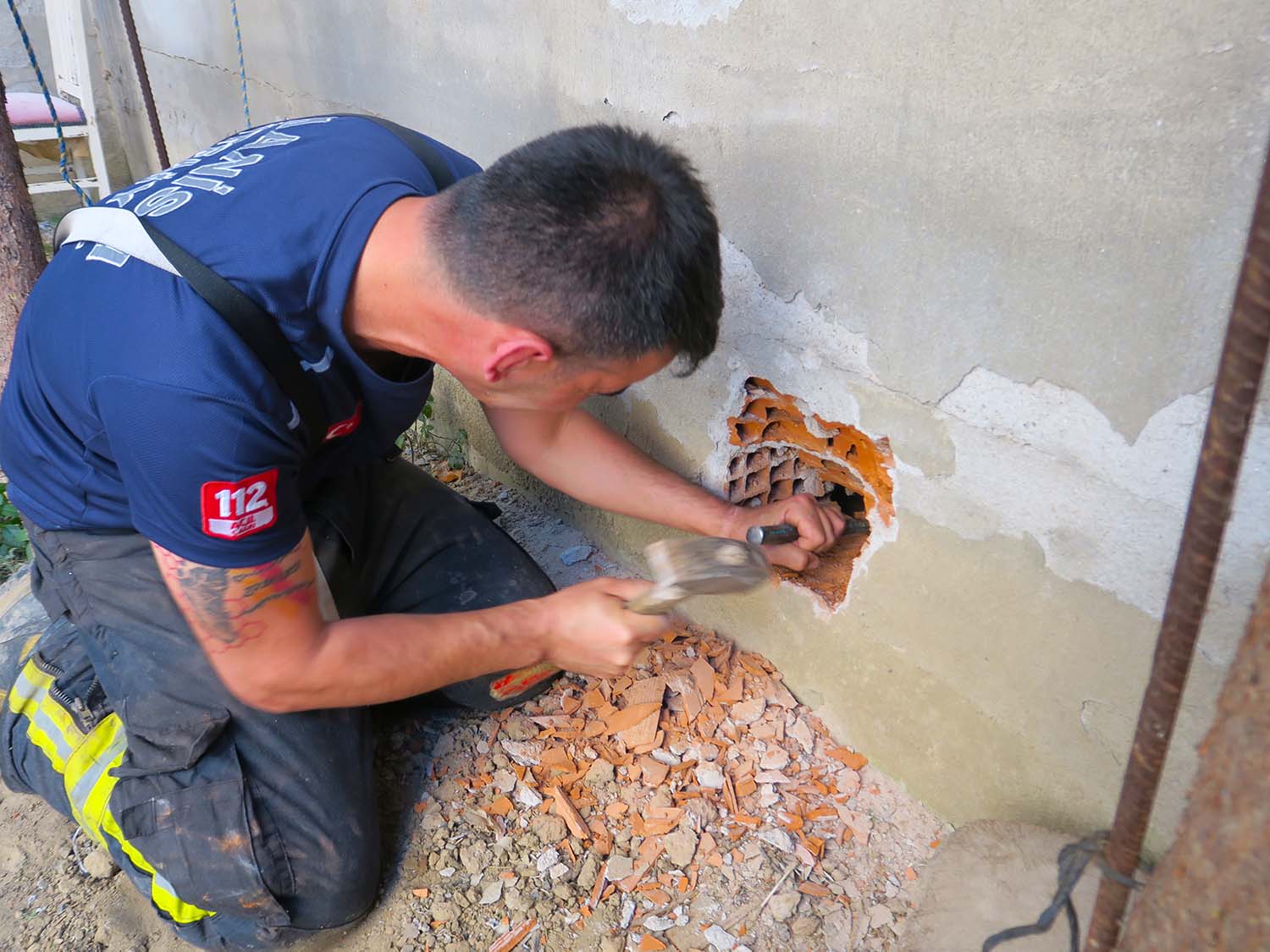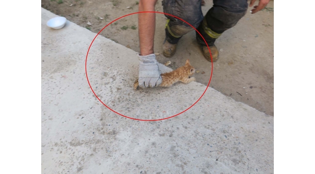 İki duvar arasında mahsur kalan yavru kediyi itfaiye kurtardı