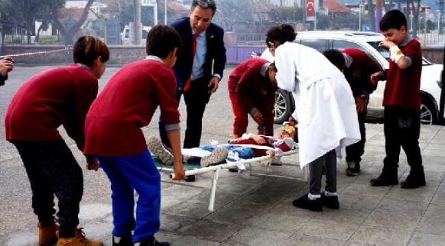 İlkokulda deprem ve yangın tatbikatı