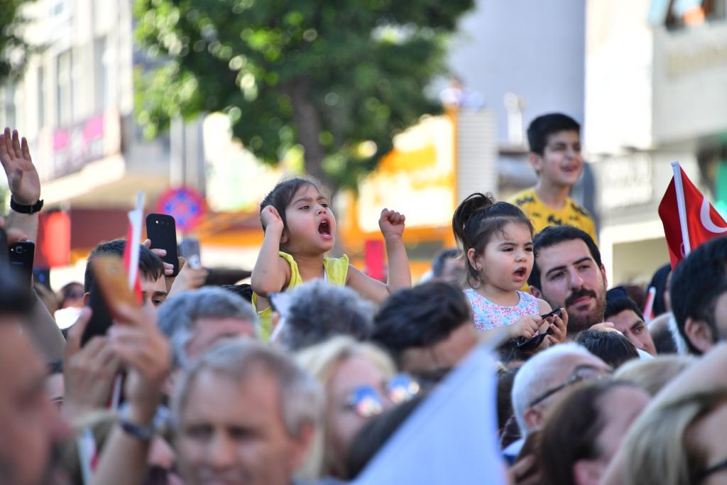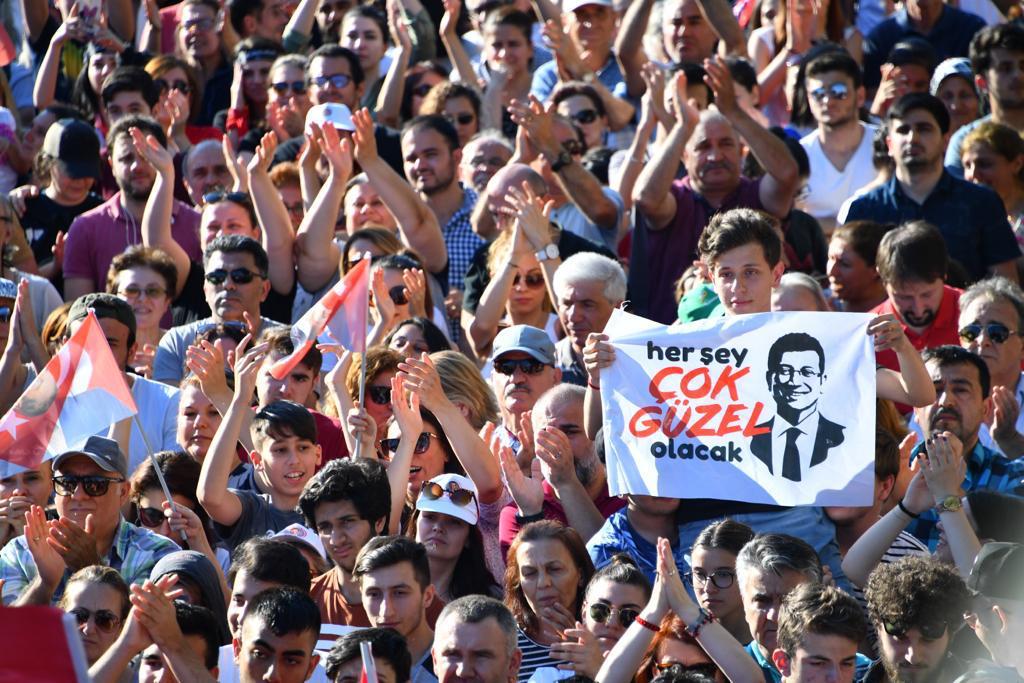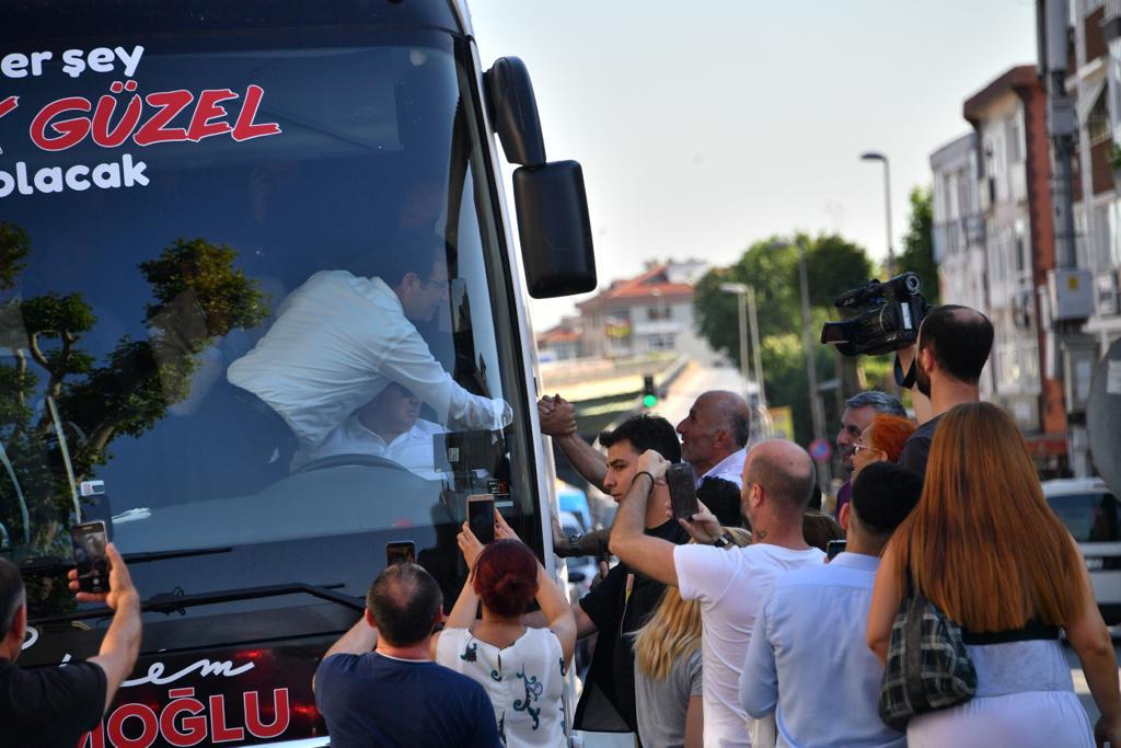 Seçilmiş İstanbul Büyükşehir Belediye (İBB) Başkanı Ekrem İmamoğlu, Haznedar Meydanı'nda vatandaşlarla buluştu. Binlerce coşkulu vatandaş, İmamoğlu'nu, ''Ekrem Başkan'' ve ''Her şey çok güzel olacak'' tezahüratlarıyla karşıladı. Vatandaşlar, çevredeki binaların balkonlarını doldurdu. İmamoğlu, sözlerine, ''İstanbul'u ve cennet memleketimi çok seviyorum. Her şey sevgiyle başlar'' şeklinde başladı. Aralarında kendi oğlunun da bulunduğu LGS sınavına girecek öğrencilere başarılar dileyen İmamoğlu, ''Çocuklarınızı sakın üzmeyin, sırtlarını sıvazlayın. Çocuklara, 'Ekrem Abiniz, 'Her şey çok güzel olacak' dedi, deyin.' Onlarla bu şehre değer katacağımızı biliyoruz. İlk adımlarımızı gençlerimiz için attık. Gençlerimize indirimler yaptık. Herkes kimin yaptığını biliyor. Daha sürprizlerimiz olacak. Suya indirim yaptık. Faturalarınızı kontrol edin. Büyük sıkıntı duydular. 18 günde bu kadar olur mu deyip, hafif çıldırdılar. 1800 gün görev yapacağım. 1800 günde onları deli edeceğim, deli. Hep birlikte başaracağız. Gençlerin önünü açacağız. Onların 'Ekrem Abisi' olmaya geliyorum'' dedi.