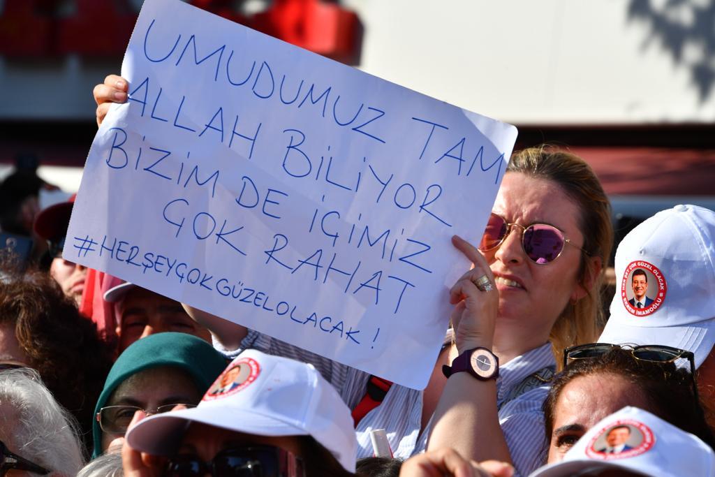 İnancın Allah'la kulu arasında olduğunu kaydeden İmamoğlu, ''Kullandıkları kirli dille insanları ayrıştırıyorlar. Hiç kimse benim inancımı sorgulayamaz ve milli duygularımla yarışamaz. Çünkü ben de hiç kimsenin inancıyla, milli duygularıyla yarışamam. Onları yargılayamam. Allah'ın işine niye karışıyorsunuz? Caminin önünde bile provokasyon yapan birkaç tip çıkıyor. Önemli değil. Biz, her şeyin farkındayız. Bu ülkenin ve şehrin maneviyatını başımızın üstünde taşımaya geliyoruz. İçinde herkes var. Camilerimiz, cemevlerimiz bizim. Bütün ibadethaneler bizim. Bu şehrin içinde olan bütün etnik kökenden insanlar bizim. Herkes, bu ülkenin ve şehrin teminatı'' diye konuştu. Şehrin nimetlerini 16 milyon insana dağıtmaya geldiklerini vurgulayan İmamoğlu, şunları söyledi: ''Ücretsiz kreşler açacağız. Kadınlar, hayata katılacaklar. Kadın üretemezse, toplum üretemez. Kadın devrimi yapacağız. Kadınlar, hayatın içinde ve morali yüksek olursa, güzel nesiller teminat altında olur. Her konuda seferberlik ilan edeceğiz. Yoksullukla mücadele edeceğiz. Bu şehrin mazlumu, fakiri olmayacak. Bu kardeşiniz, bu şehrin fakirlerine, mazlumlarına bütçeden hak ettikleri payı verecek. Biz, sizin vicdanınız olacağız. Onların unuttuklarını biz hatırlayacağız. Siyasetin ahlak dışı dilini bitireceğiz. 6 aydır İstanbul'un huzurundayım. Söz verdiğim gibi, kötü söz konuştum mu, birine hakaret ettim mi? ('Hayır' sesleri.) Etmedim. Bundan sonra da etmeyeceğim. Niye biliyor musunuz? Eve gidince o mini minnacık kızımın yüzüne bakabileyim diye. Annemin ve babamın karşısında yüzüm kızarmasın diye.''