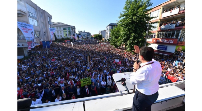 Ülkeyi ve şehri yönetenlerin halktan uzaklaştığını vurgulayan İmamoğlu, ''Yönetenleri kibir kapladı. Üretemiyorlar. Son zamanlarda, Ramazan ayında tek yaptıkları şey, yalan söylemek ve iftira atmak. Allah akıl versin. Bunun nedeni üretememek. Dar bir çevreye tıkandılar. Biz, milletimizi barıştırmaya geliyoruz. Bir-iki gün önce bir konuşma yaptı rakibimiz. Dedi ki, 'Türkiye'de siyasi kadro yok. Sadece bizde kadro var.' Onlarda nasıl bir kadro varsa, aynı isimler dolaşıp duruyor. Bir bakıyorsunuz belediye başkanı, yetmedi orada aday. Aynı şeyi kendi de yaşıyor. Efendim, en iyi kadro onlarda varmış. Zannediyor ki, sadece kadro onların partilerinde var. Niye biliyor musunuz? Halktan uzaklaştılar. Ben de diyorum ki, onlara söylüyorum; bizim İstanbul'da tam 16 milyon kadromuz var. Bu ülkenin ve şehrin pırıl pırıl gençleri var, yetişmiş insanları, akademisyenleri var. Bunların ne yapmak istediğini anlamıyorum. 'Kadro yok' diyorlar. Kendi içlerindeki yetenekli ve becerikli insanları da devre dışı bıraktılar. Onları da yok sayıyorlar. Ben, bu şehrin insanlarına her yerde, her ortamda şans vereceğim, önlerini açacağım. Gençlerle, kadınlarla, bu şehrin insanlarıyla çalışacağım. Size söz veriyorum. Benim de var ama ben çalışmayacağım. Kardeşimle, damadımla, kızımla, oğlumla çalışmayacağım. Onlar işine baksın. Ben, 16 milyon insanımla çalışacağım. Ben, sizi mahcup etmeyeceğim, siz de beni hiçbir zaman mahcup etmeyeceksiniz'' şeklinde konuştu.