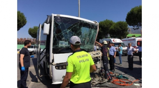 İşçi servis midibüsü, TIR'ın dorsesine çarptı: 6 yaralı