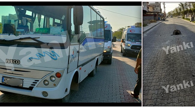 MANİSA’nın Turgutlu İlçesinde bir turşu fabrikasına işçi taşıyan otobüs, üzerinden geçtiği sırada açılan rögar kapağına çarpması sonucu kaza yaptı. Çarpmanın etkisiyle savrulan otobüsteki 7 işçi çeşitli yerlerinden yaralandı.