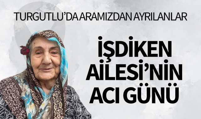 İşdiken Ailesi’nin Acı GünüTURGUTLU İlçesi sakinlerinden eski bisikletçi Kemal İşdiken’in eşi Muazzez İşdiken 86 yaşında hakkın rahmetine kavuştu.Cenazesi bugün ikindi namazına müteakip Çakıcı Camii’nde kılınacak cenaze namazının ardından eski kabristanda toprağa verilecek.Yakınları: oğulları Sabri İşdiken, Yasin İşdiken, kızı Emir HataMerhumeye Allah'tan rahmet, yakınlarına başsağlığı dileriz.