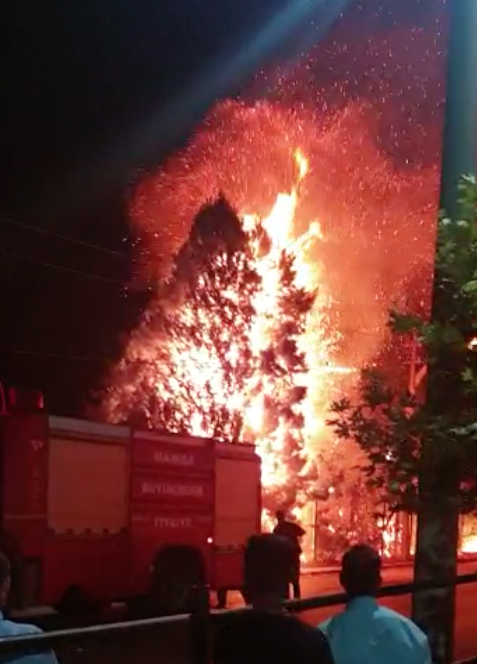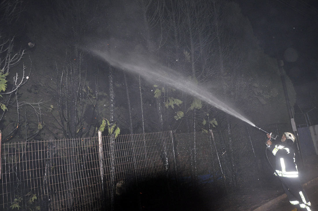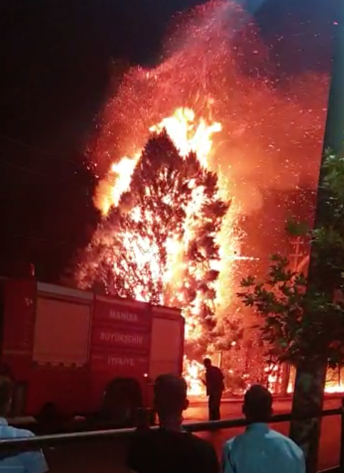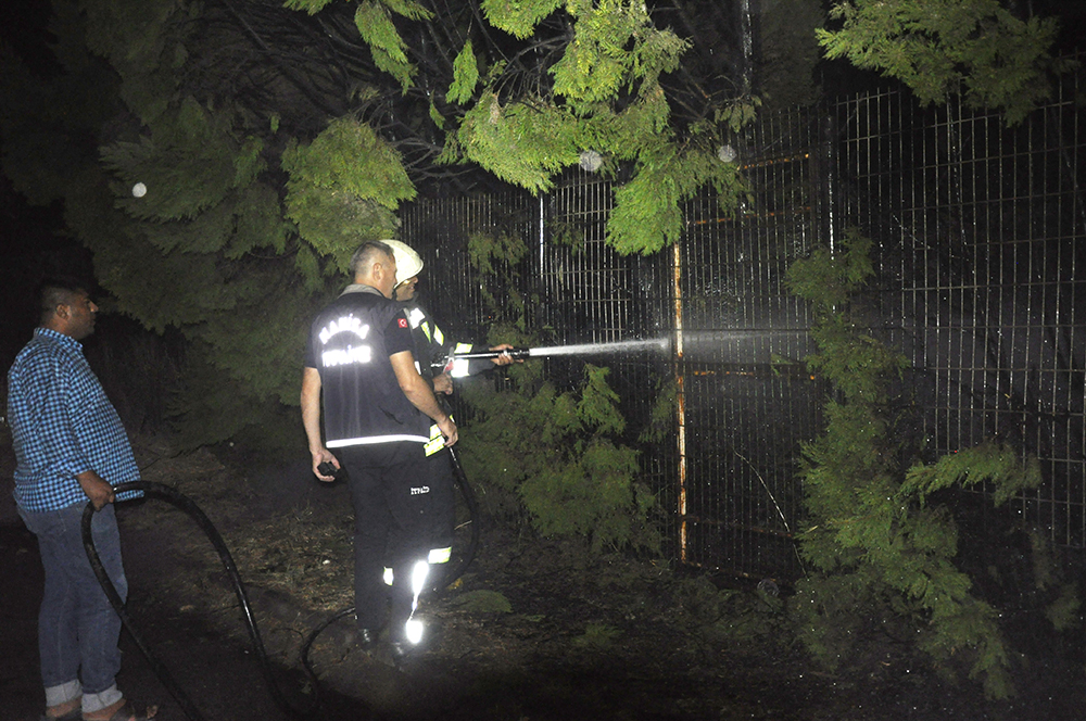 İstasyonaltı'nda yangın: Faciadan dönüldü (VİDEO)MANİSA’nın Turgutlu İlçesi İstasyonaltı Mahallesinde elektrik tellerinden çıktığı sanılan yangın çam ağaçlarına sıçradı. İtfaiye ekiplerinin kısa sürede söndürdüğü yangında facianın eşiğinden dönülürken, çam ağaçlarının bulunduğu tarlada bir çiftçinin ilaçlama makinesi zarar gördü.Yangın, salı akşamı saat 21.00 sıralarında İstasyonaltı Mahallesi Kısmalı Yolu Caddesinde meydana geldi. Mahallenin düğün salonunun yakınında, ilk belirlemere göre elektrik direğindeki tellerden çıkan kıvılcımlar, çam ağaçlarına sıçradı. Bir anda büyüyen yangında çam ağaçları alev aldı. Ağaçların yandığını görenler durumu itfaiyeye bildirdi. İhbar üzerine olay yerine gelen Manisa Büyükşehir Belediyesi Turgutlu İtfaiye Amirliği ekipleri, yangına müdahale ederek kısa sürede kontrol altına aldı. Düğün salonunda bulunan çok sayıda kişi de korku dolu anlar yaşadı. GDZ Elektrik Dağıtım A.Ş. ekiplerinin olay yerinde incelemelerde bulunduğu yangında, yol kenarında bulunan Fırat Üzer'in sahibi olduğu tarlada, kiracı Alparslan Ertaş’a ait ilaçlama makinesi kül oldu. İtfaiye ekipleri yangının çıkış sebebini araştırıyor. Yangınla ilgili bilgi alan İstasyonaltı Mahalle Muhtarı Orhan Kaya, ağaçların elektrik tellerine çok yakın olduğunu belirterek, kaldırılıp başka yere nakledilmesi için Turgutlu Belediyesi Park ve Bahçeler Müdürlüğüne başvuracaklarını söyledi. Nurullah ÇANKAYA
