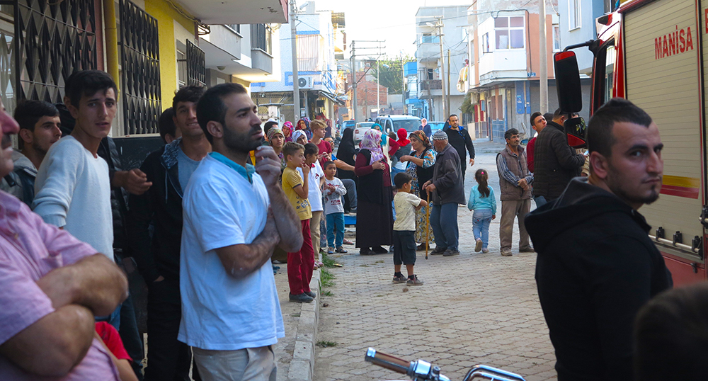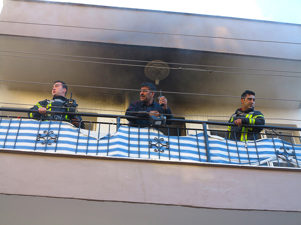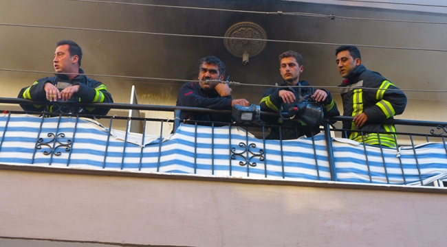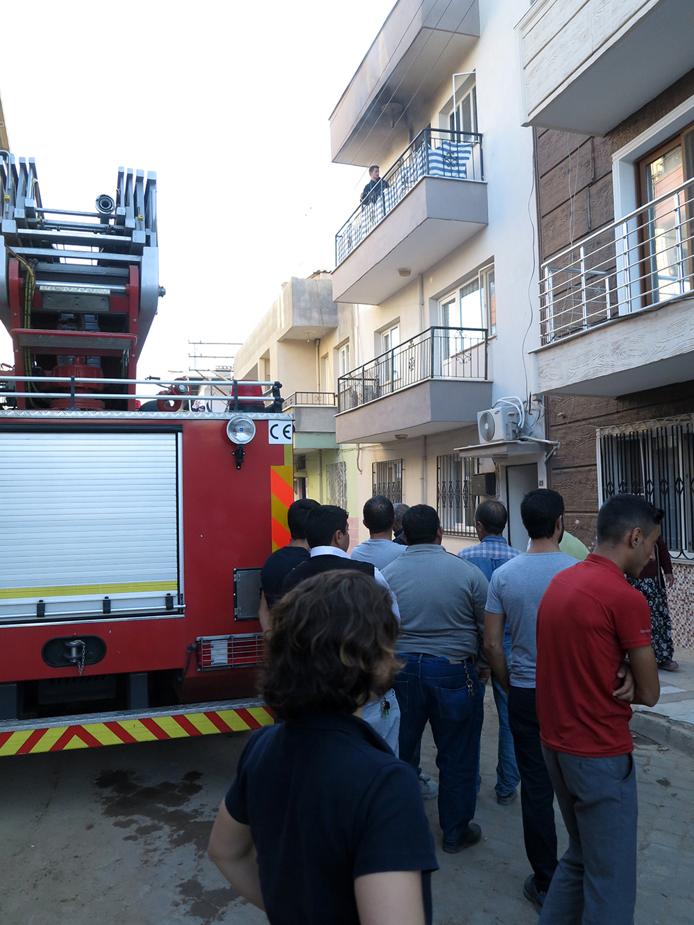 MANİSA’nın Turgutlu İlçesi’nde evde çıkan yangın panik yarattı.Yoğun dumandan etkilenen itfaiyeciler görevlerini yapmanın mutlluğu ile yanan evin balkonunda derin bir nefes aldı.Yangın söndürüldü, evdeki aralarında çocuklarında olduğu insanlar tahliye edildiOlay bugün saat 17.00 de Remzi A. (45) ikamet ettiği Bozkurt Mahallesi Damla Sokak No 6 sayılı ikametteki apartmanın üçüncü katında çıktı.İddiaya göre evin oturma odasında kibritle oynayan beş yaşındaki çocuk yangına neden oldu, Evdekilerin haber vermesi üzerine olay yerine gelen Manisa Büyükşehir Belediyesi İtfaiyesi Turgutlu İtfaiye Amirliğine bağlı ekipler 3.kata çıkarak yangına su ile müdahale ederek büyümden kontrol altına aldı. Panikle dışarıya çıkan 3 kattakiler yara almadan dışarı çıktı. Yoğun dumandan etkilenen itfaiyeciler, balkona çıkarak nefes aldılar. Yangında oturma odası, mutfak zarar gördü.Olay yerine tedbirden ambulans geldi. Polis yangınla ilgili soruşturma başlattı. Doğan ÇİZMECİ