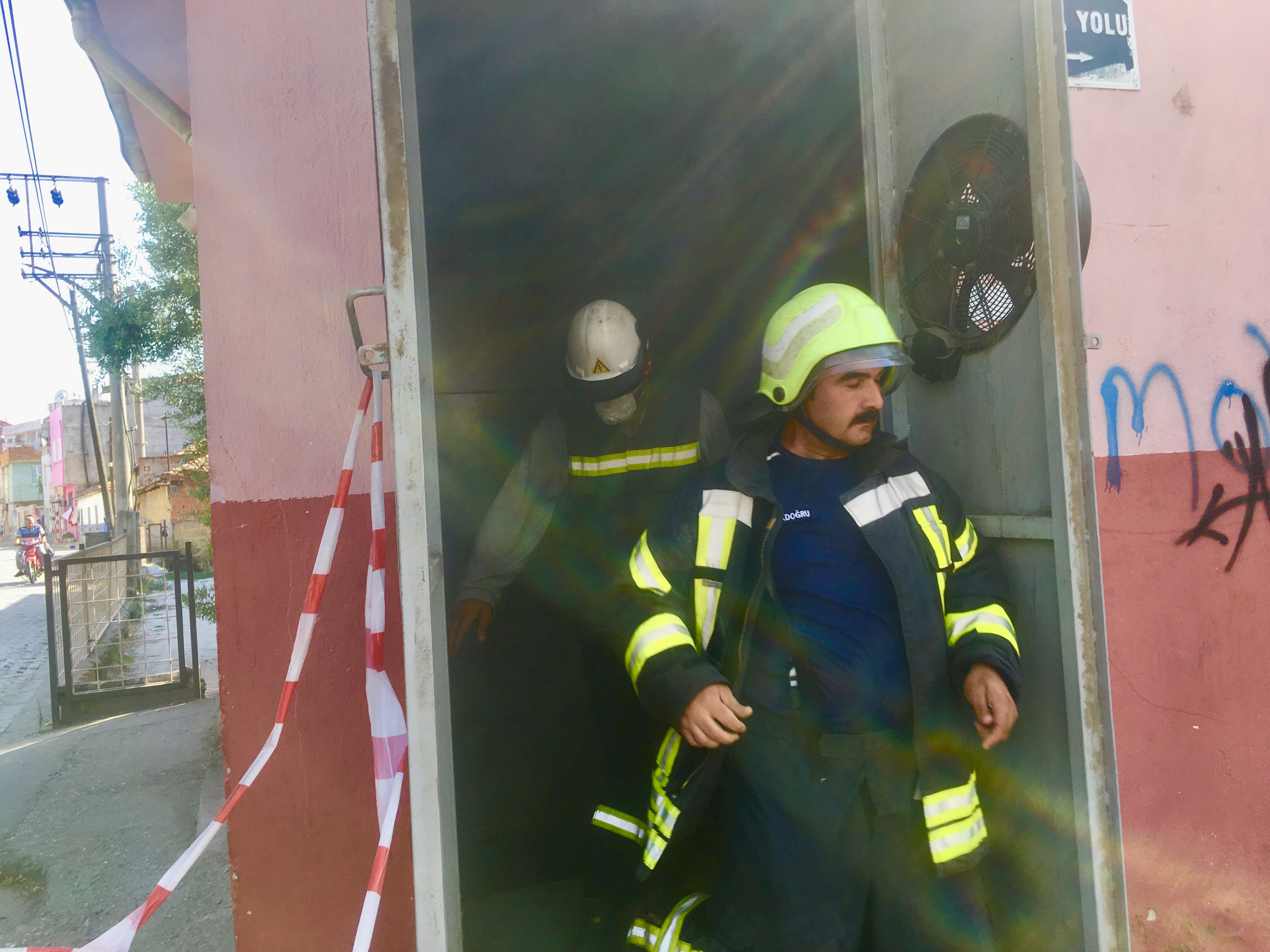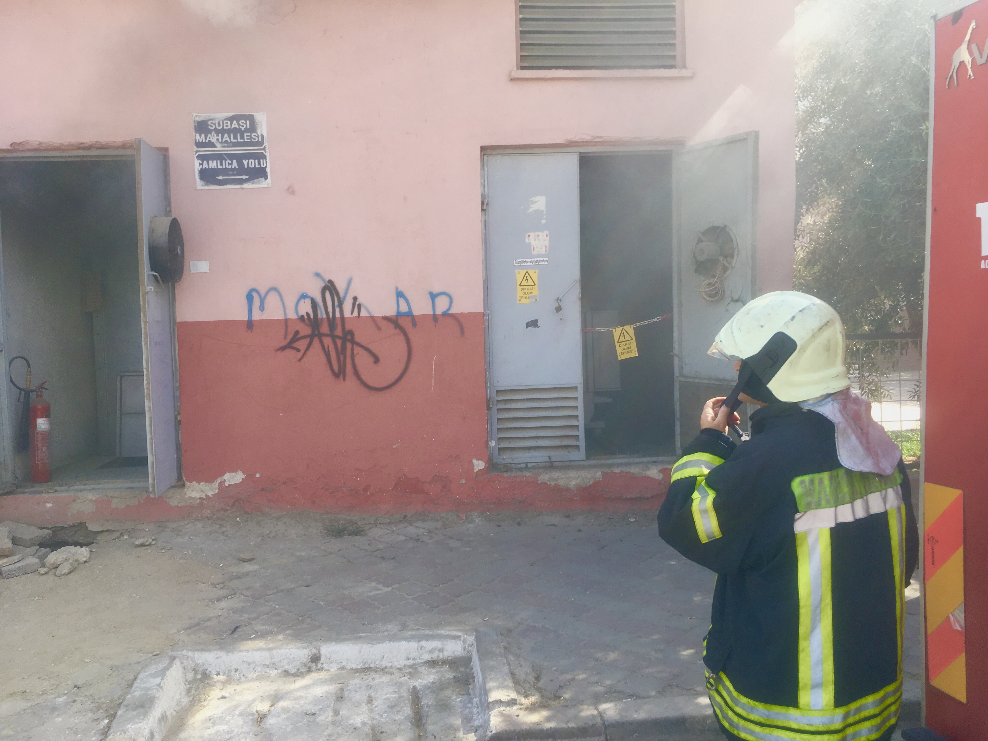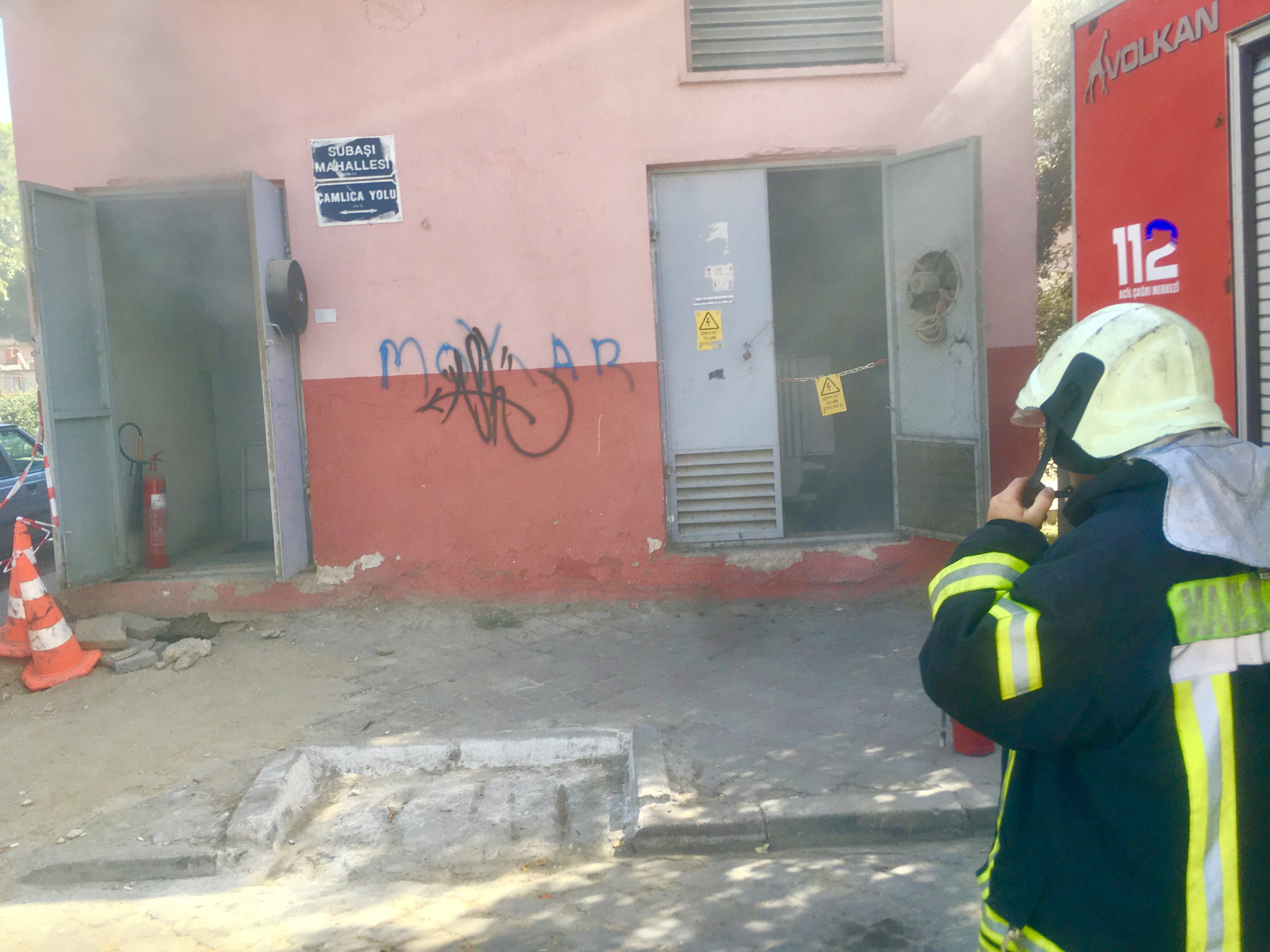 Manisa’nın Turgutlu ilçesinde Şubası Mahallesi Çamlıca sokak üzerindeki bir elektrik trafosunda bilinmeyen bir nedenle dumanlar çıkmaya başladı.Durumu görenlerin haber vermesi üzerine olay yerine Manisa Büyükşehir Belediyesi Turgutlu İtfaiye Amirliği görevlileri geldi. Kapının kilitli olması üzerine olay yerine Gediz Aş. Görevlileri trafo binasının kapısını açarak elektrik akımını kestiler. İtfaiye görevlileri yayan kablolara köpük sıkarak alevlerin büyümesini önledi. Mahalleye bir süre elektrik akımı verilmedi. Yangının çıkış nedeni araştırılıyor. Söndürme çalışması sırası itfaiye görevlileri aşırı dumandan zor anlar yaşadı. DOĞAN ÇİZMECİ