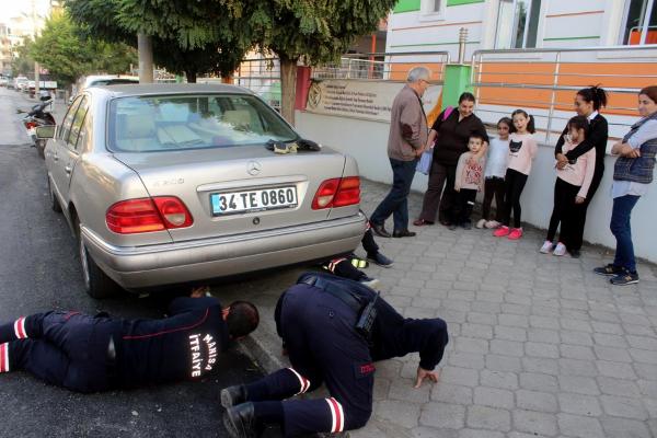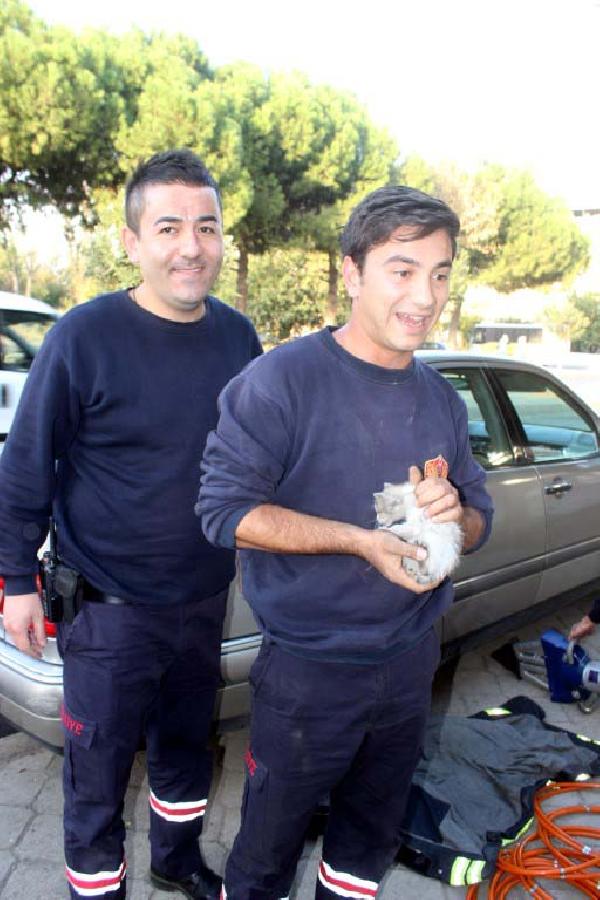 MANİSA'nın Salihli İlçesi'nde, park halindeki bir otomobilin motor kısmına sıkışan yavru kediyi fareden çocukların ihbarı üzerine itfaiye ekipleri, yavru kediyi sıkıştığı yerden kurtardı. Çocuklar kurtarılan kediyi sahiplendi.