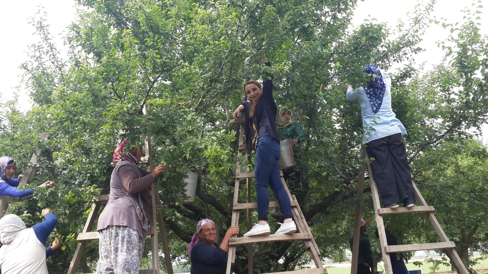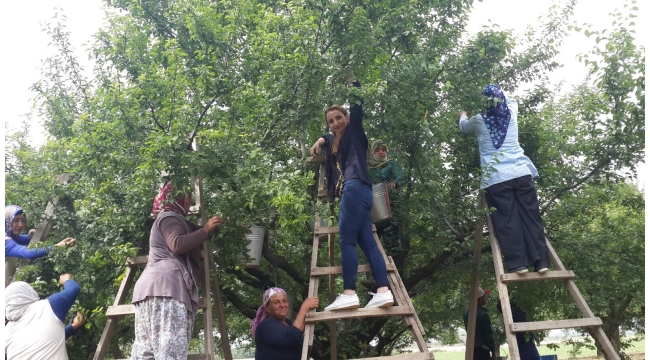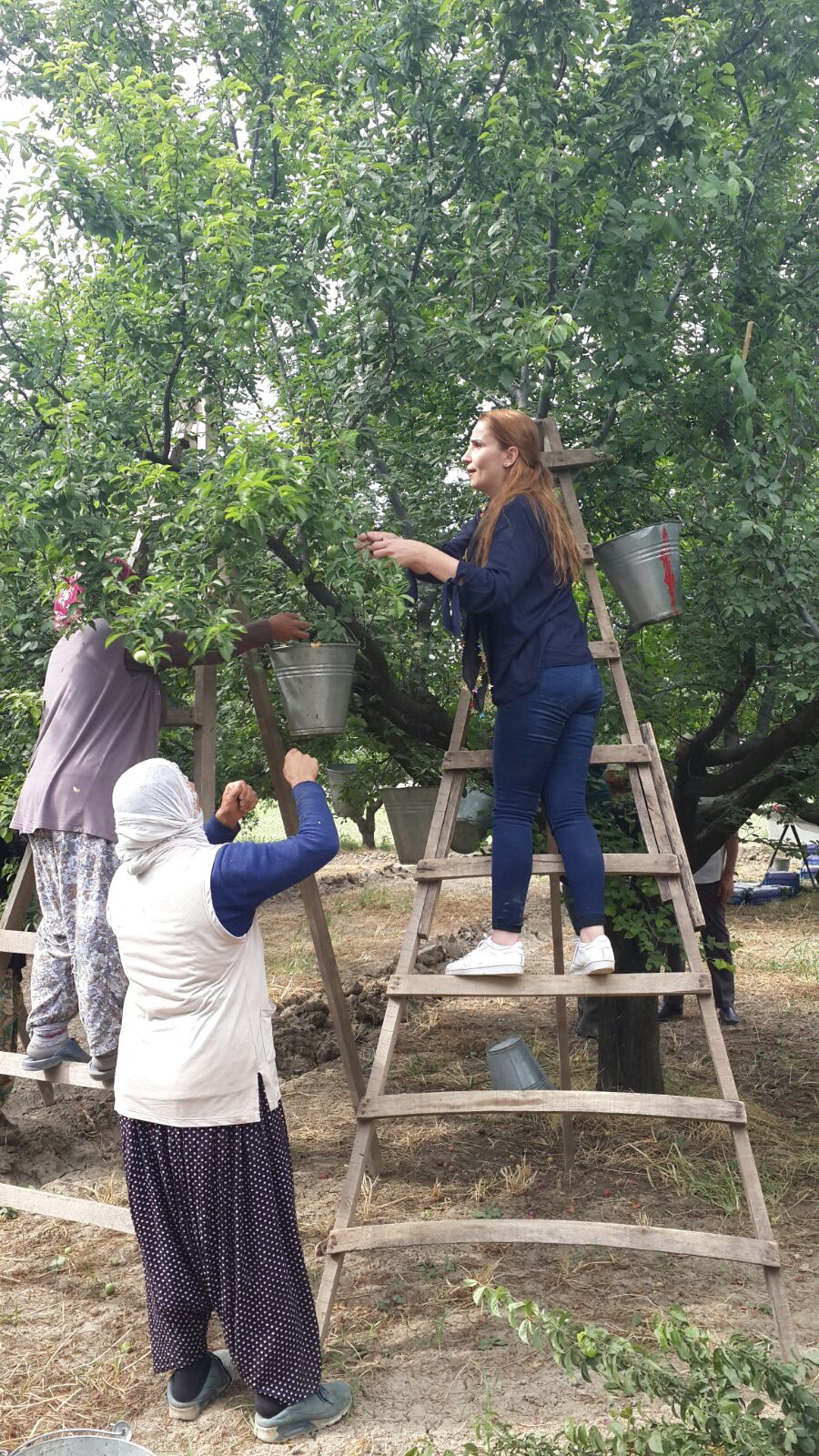 İYİ Partili Yaşır, tarım işçileriyle erik topladı