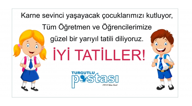 Karne sevinci yaşayacak olan çocuklarımızı kutluyor, Tüm öğretmen ve öğrencilerimize güzel bir yarıyıl tatili diliyoruz.YEDİ EYLÜL MATBAACILIK VE GAZETECİLİK LTDŞİ.