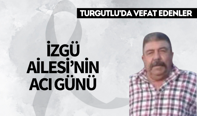 İzgü Ailesi’nin Acı Günü TURGUTLU İlçesi Çatalköprü Mahallesi sakinlerinden Abdullah İzgü hakkın rahmetine kavuştu.Cenazesi bugün öğle namazına müteakip kılınacak cenaze namazının ardından Çatalköprü kabristanda toprağa verilecek.Yakınları: çocukları Kemal İzgü, muhtar Kadir İzgü, Kamile İzgü, Aysel Engin, Nursel AktaşMerhuma Allah’tan rahmet, yakınlarına başsağlığı dileriz.