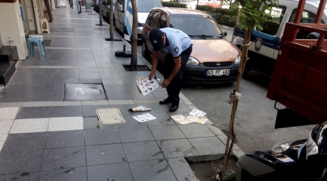 Manisa Büyükşehir Belediyesi Zabıta Dairesi Başkanlığı, apartman girişlerine, yerlere, araç üzerlerine, iş yeri kapılarına gelişigüzel atılan veya bırakılan, kaldırım üzerinde vatandaşlar yürürken verilmeye çalışılan el broşürleri ile ilgili çalışma başlattı. İzinsiz olarak bu faaliyetleri yürüten firma ve şahıslar tespit edilerek gerekli cezai işlemlerin uygulandığı belirtildi.Manisa Büyükşehir Belediyesi Zabıta Dairesi Başkanlığı, hiçbir damgası ve izni bulunmayan, el broşürleri ile ilgili çalışma başlattı. Zabıta ekiplerince yürütülen çalışma kapsamında apartman girişlerine, yerlere, araç üzerlerine, iş yeri kapılarına gelişigüzel atılan veya bırakılan, kaldırım üzerinde vatandaşlar yürürken verilmeye çalışılan ve çevre kirliliği ile görüntü kirliliği oluşturan el broşürleri ile ilgili olarak yürütülen çalışma kapsamında ilgili firma ve şahıslar tespit edilerek cezai işlem uygulanıyor. Çalışma hakkında bilgi veren Manisa Büyükşehir Belediyesi Zabıta Daire Başkanı Aydoğan İra, bazı firmaların reklam vergisi ödemeden, izinsiz bir şekilde el broşürlerinin dağıtımını yaptığını belirterek, “Çevre ve görüntü kirliliğine neden olan bu tür faaliyetleri yapan şahıslar ve firmalar tespit edilerek gerekli cezai işlemler uygulanmaktadır. Vatandaşlarımızın ve firmaların bu konuda cezaya maruz kalmamaları için gerekli izinleri alıp kurallarına uygun şekilde broşürlerini dağıtmaları gerekmektedir” dedi.HABER MERKEZİ