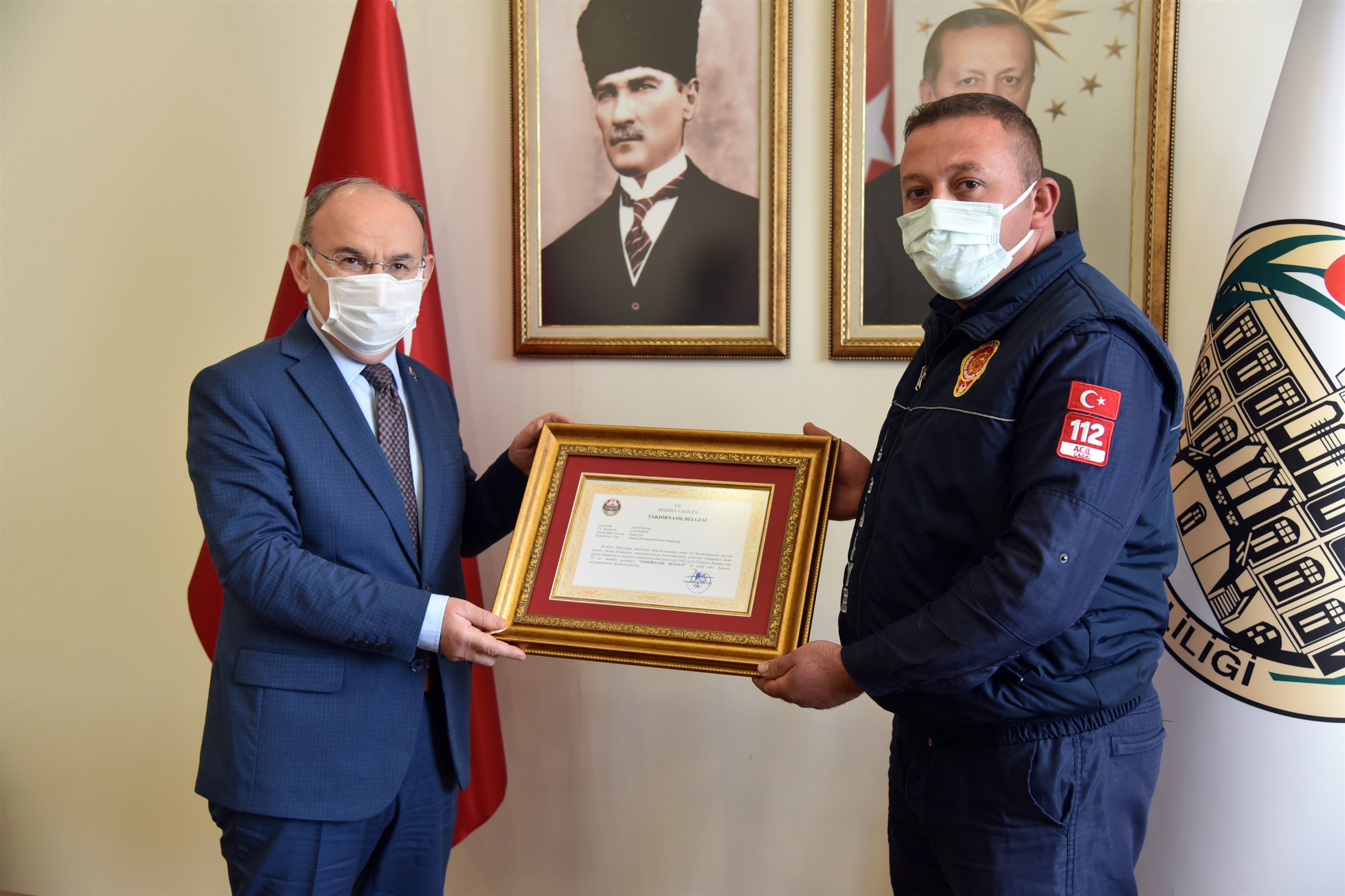 İzmir Depreminde Görev Alan İtfaiye Personeline Başarı Belgesi Verildi