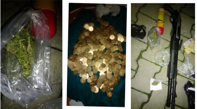 Turgutlu'da uyuşturucu operasyonu: 2 gözaltı MANİSA'nın Turgutlu ilçesinde, jandarmanın düzenlediği operasyonda, 1 kilo 160 gram esrar, 247 gram metamfetamin, ruhsatsız 2 av tüfeği ve 570 penez altın ile yakalanan 2 kişi gözaltına alındı.Turgutlu İlçe Jandarma Komutanlığı ekipleri, istihbarat çalışmasıyla İ.U.'nun uyuşturucu ve uyarıcı madde imal ve ticareti yaptığını belirledi. İ.U., bir süre teknik ve fiziki takibe alındı. Takibin ardından dün saat 19.00 sıralarında harekete geçen jandarma, şüphelinin de bulunduğu İzmir plakalı bir otomobili durdurdu. İ.U. ve yanındaki E.Z., gözaltına alındı. Şüphelilerin üzerleri ile otomobili ve evlerinde, özel eğitimli narkotik köpeği 'Vicdan' ile yapılan aramalarda, toplam 1 kilo 160 gram esrar, 247 gram metamfetamin, ruhsatsız 2 av tüfeği ve 570 penez altın ele geçirildi. Şüphelilerin jandarmadaki işlemlerinin sürdüğü bildirildi.Doğan ÇİZMECİ*İnternet sitesinde yayınlanan yazı, haber, video ve fotoğrafların her türlü hakkı Yedieylül Gazetecilik ve Matbacılık.Ltd.Şti.’ye aittir. İzin alınmadan, kaynak gösterilerek dahi iktibas edilemez. Yedieylül Gazetecilik ve Matbacılık.Ltd.Şti.