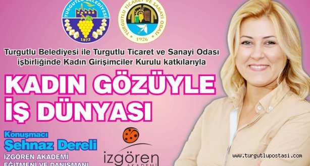 TURGUTLU Belediyesi, Turgutlu Ticaret ve Sanayi Odası işbirliği ve Kadın Girişimciler Kurulu katkılarıyla konuşmacılığını Şehnaz Dereli’nin yapacağı ‘Kadın Gözüyle İş Dünyası’ konulu konferansa imza atacak.